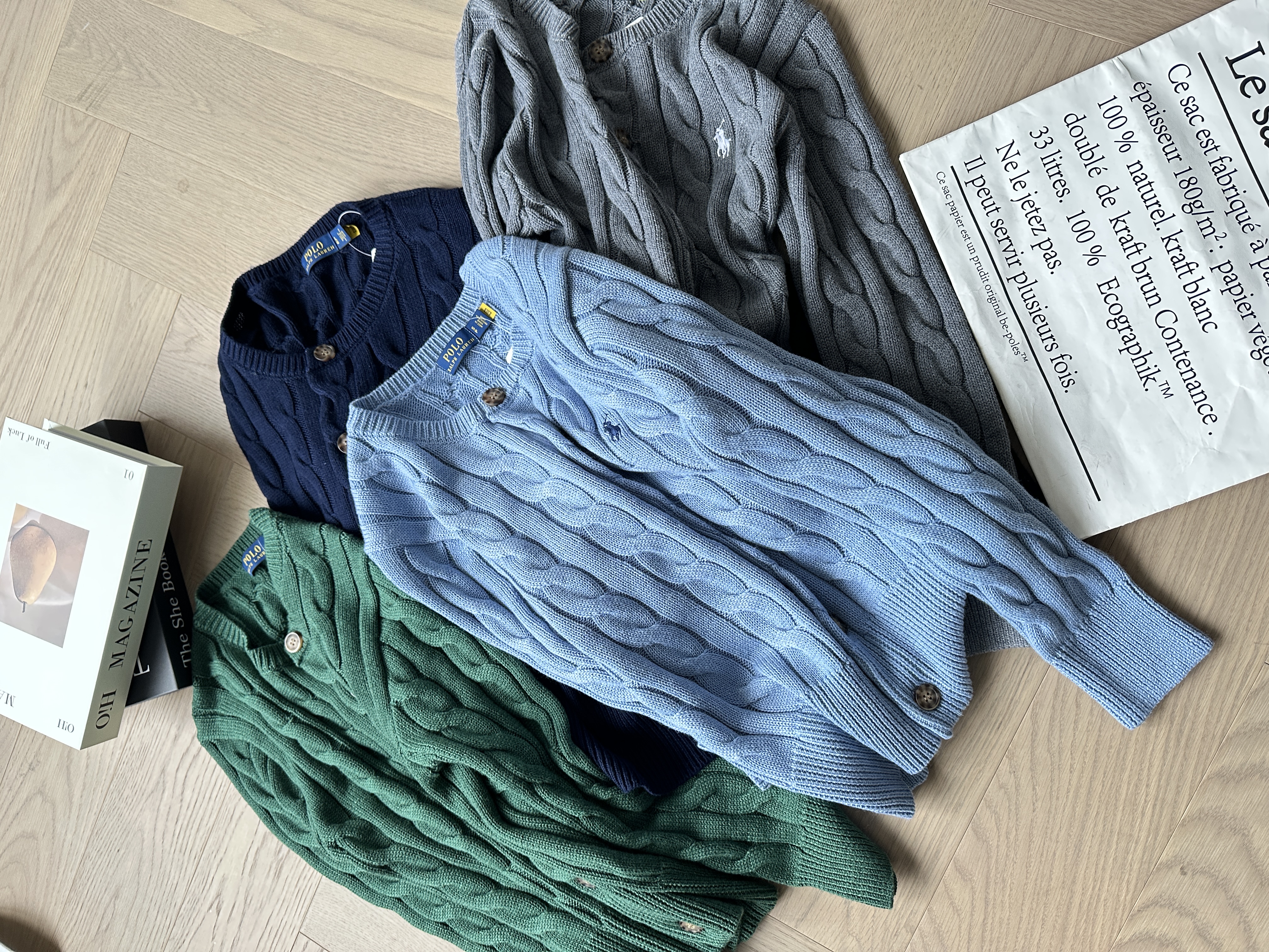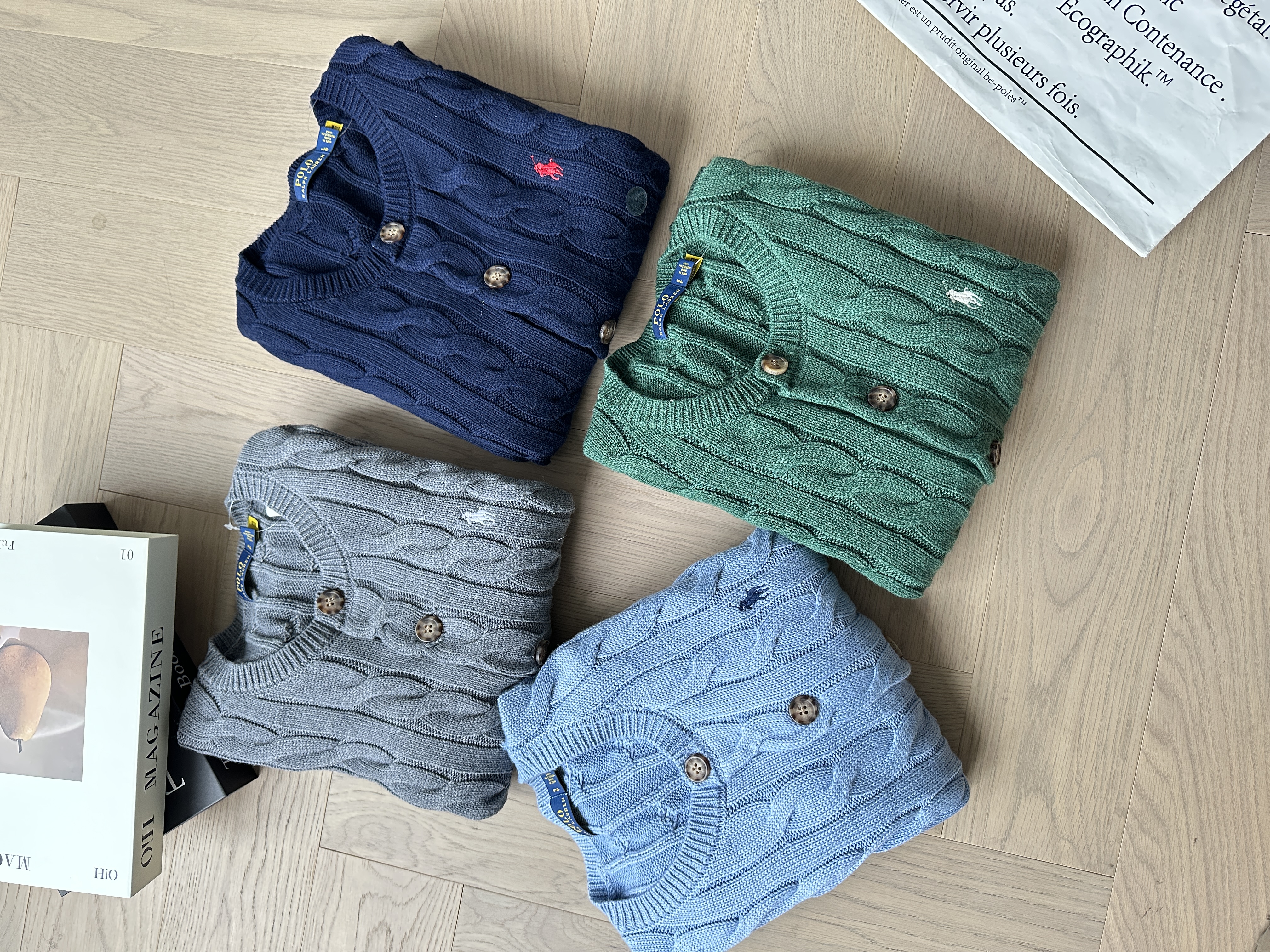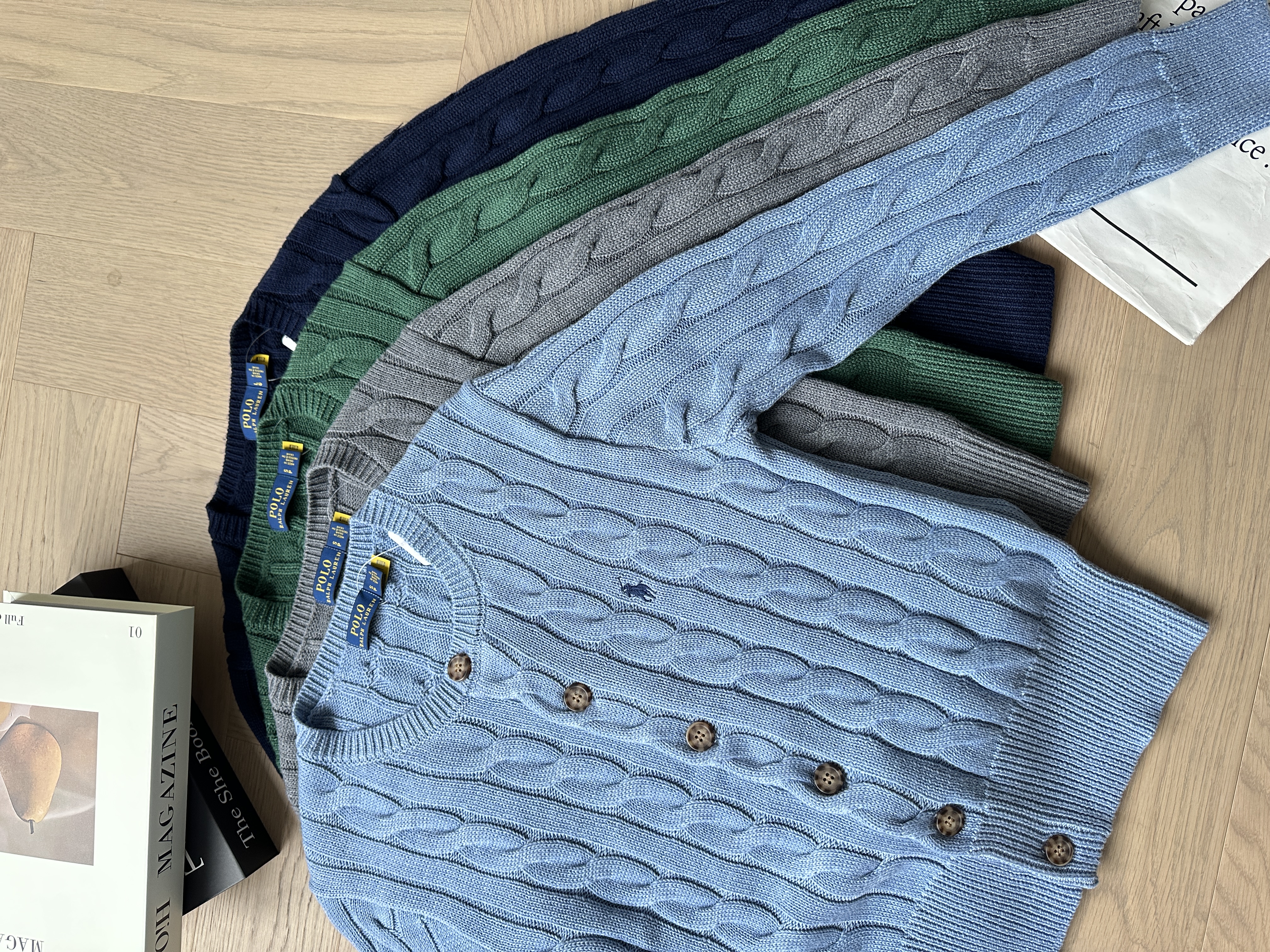 单品包邮现货 THS-无 RL马球 女士源厂尖尾PRL羊毛棉Cable Knit经典圆领女款开衫 5色 BM3202