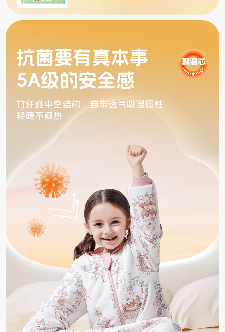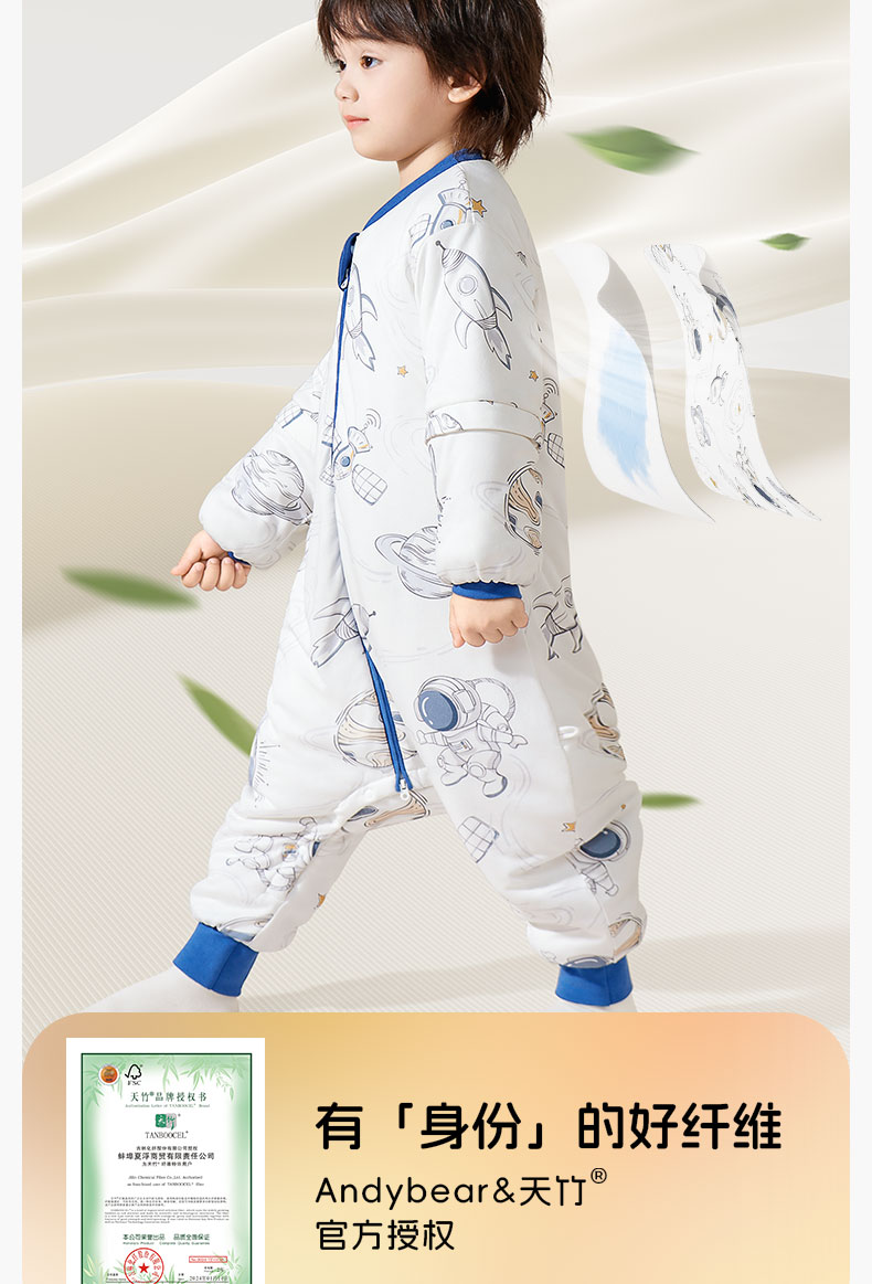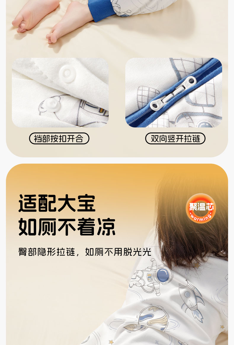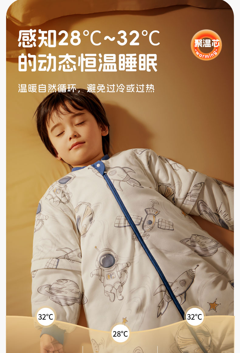 爱贝迪拉儿童睡袋恒温宝宝春秋款婴儿秋冬款防踢被子神器四季通用