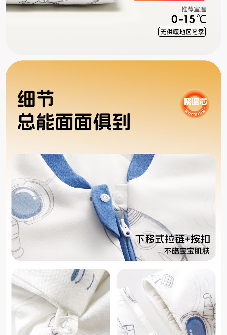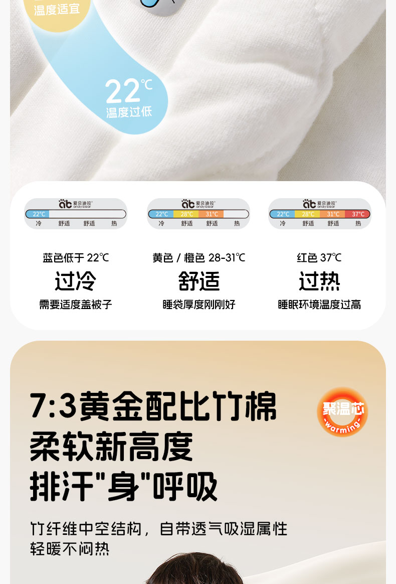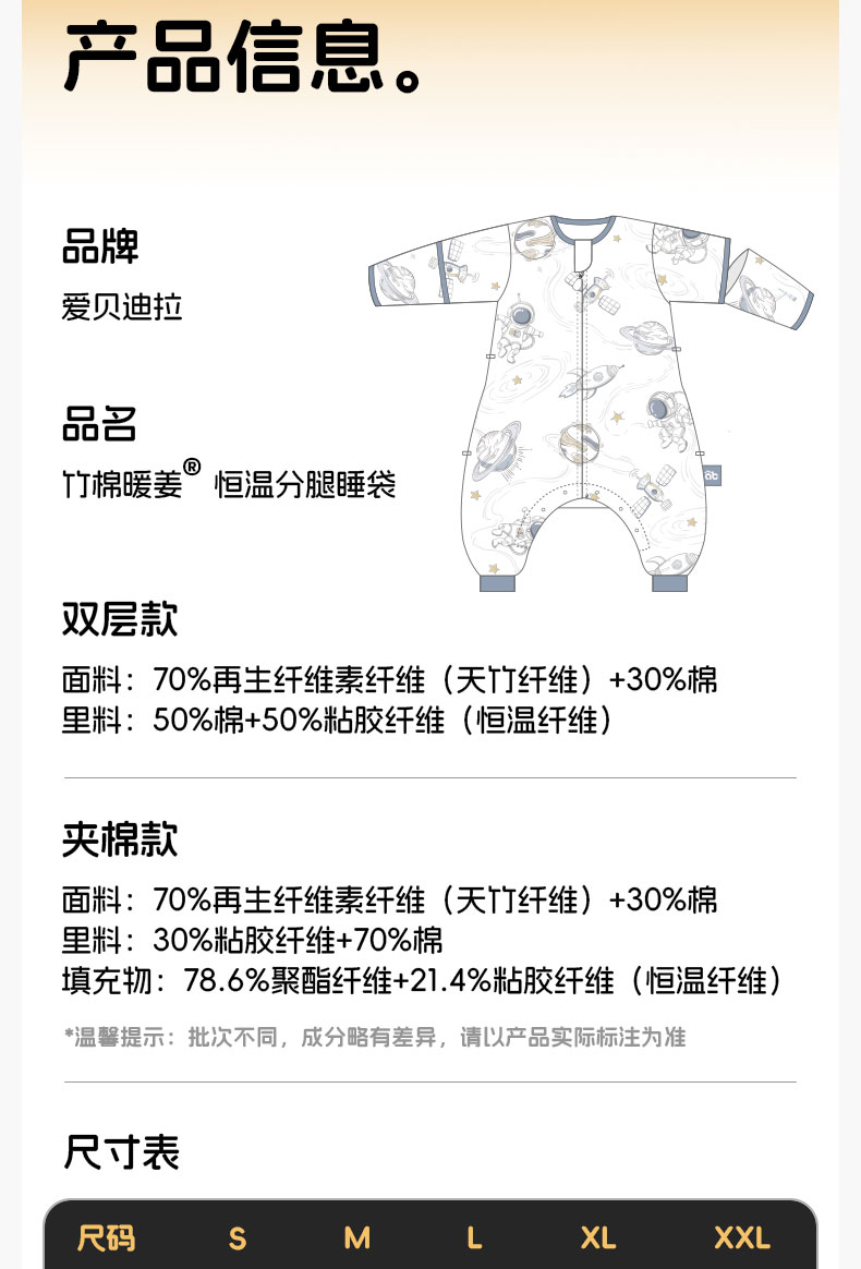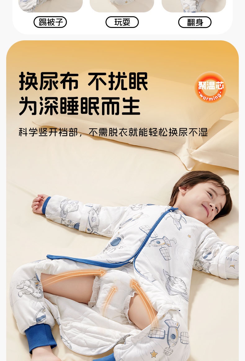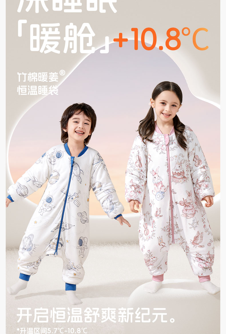 爱贝迪拉儿童睡袋恒温宝宝春秋款婴儿秋冬款防踢被子神器四季通用