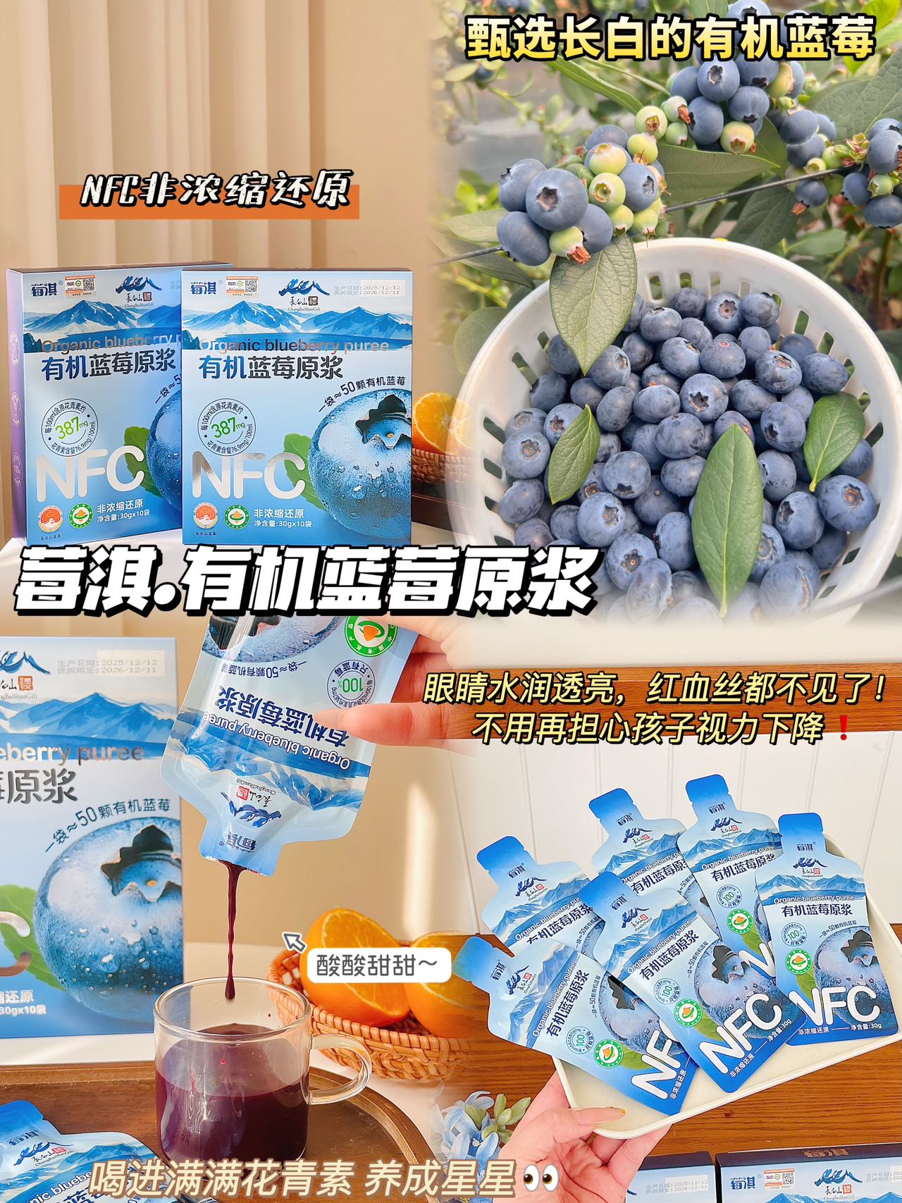 ✅每袋约含50颗有机蓝莓的精华!
