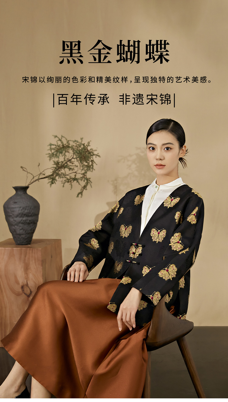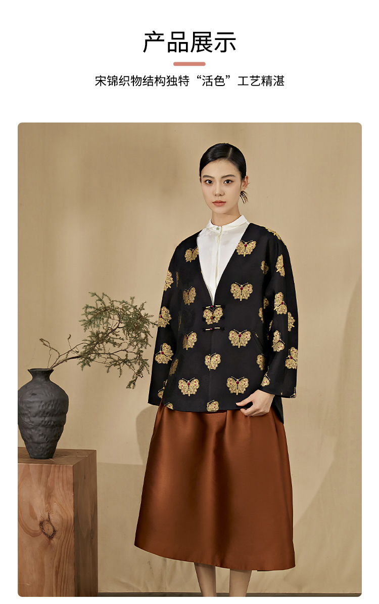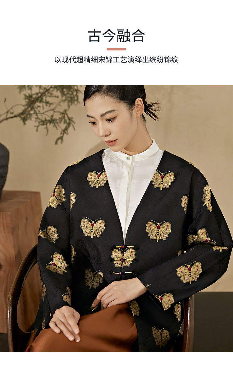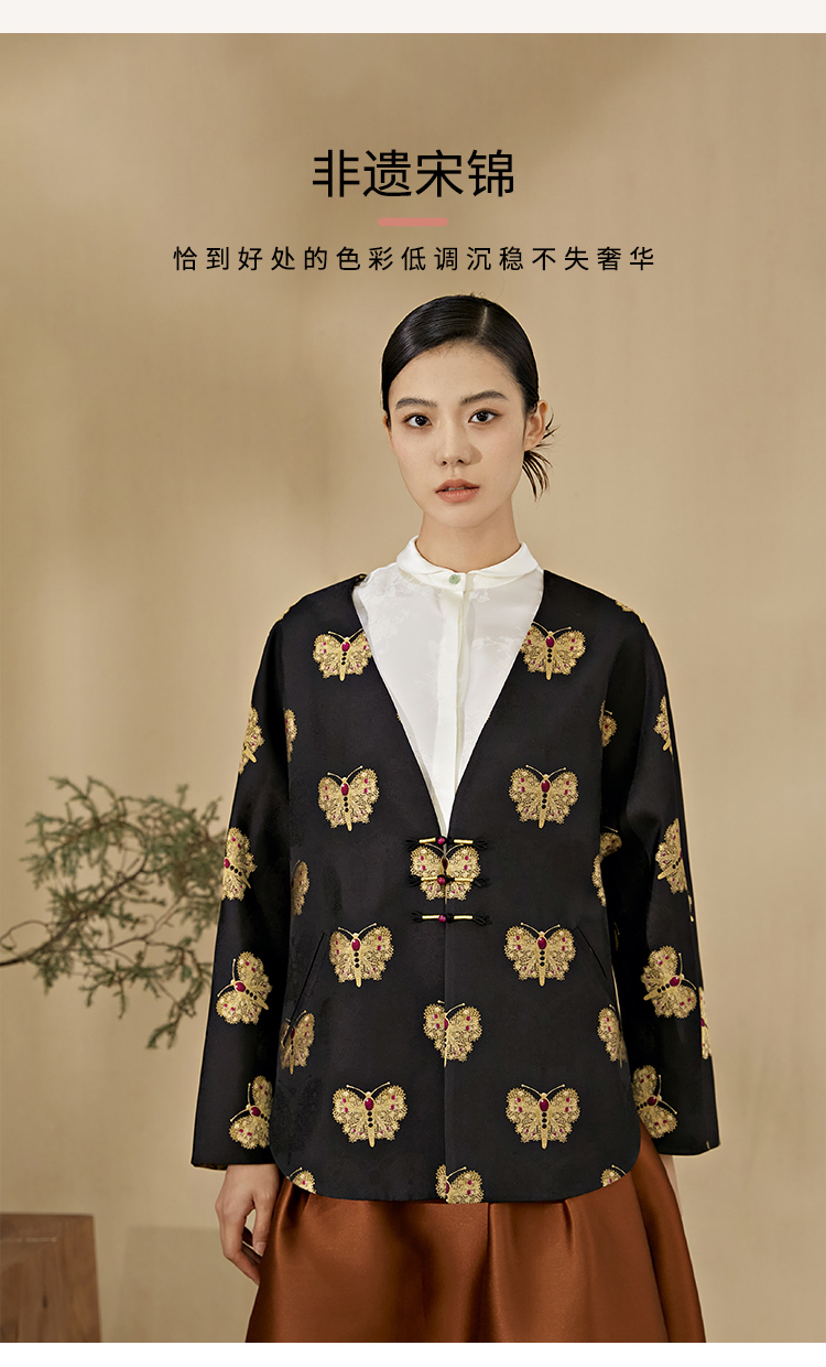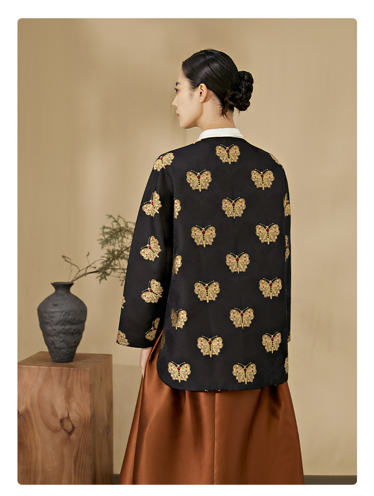 SAINTJOY/上久楷 女式宋锦外套 中式上衣 中国风 复古 黑金蝴蝶 DWW23009-3