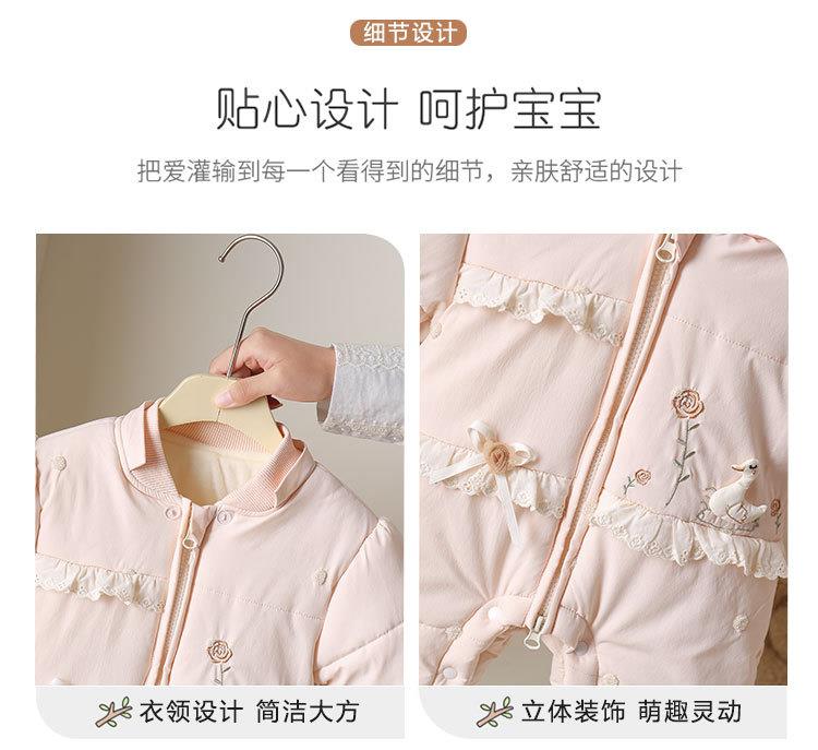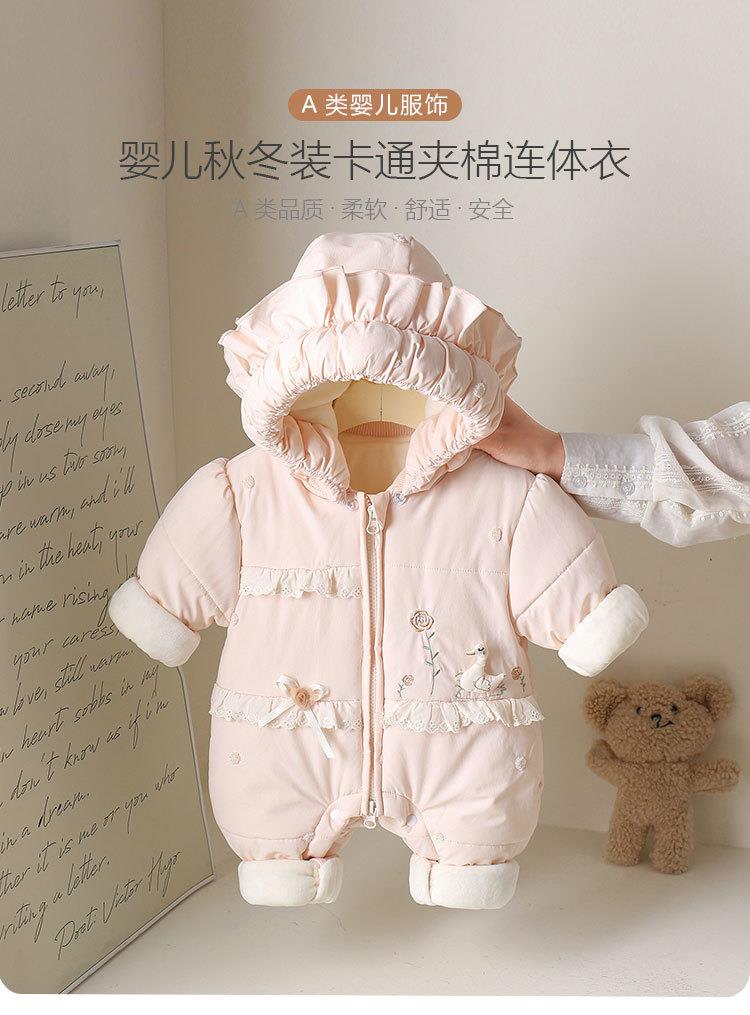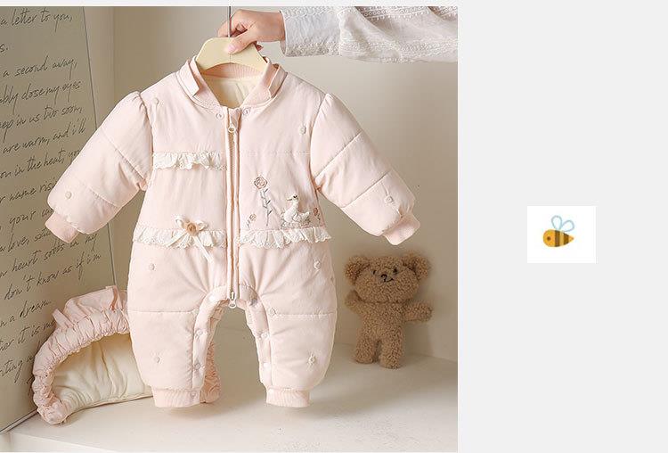 2025秋冬新款婴儿加绒加厚连体衣可爱女宝宝冬季保暖外出服爬服