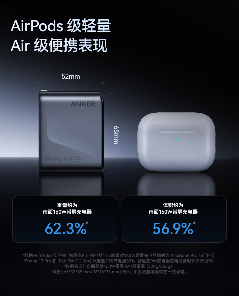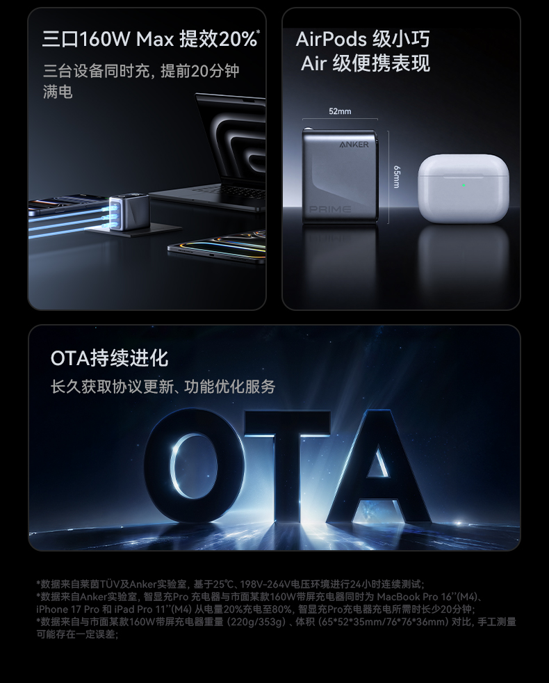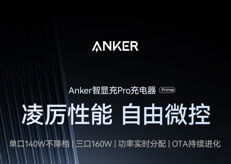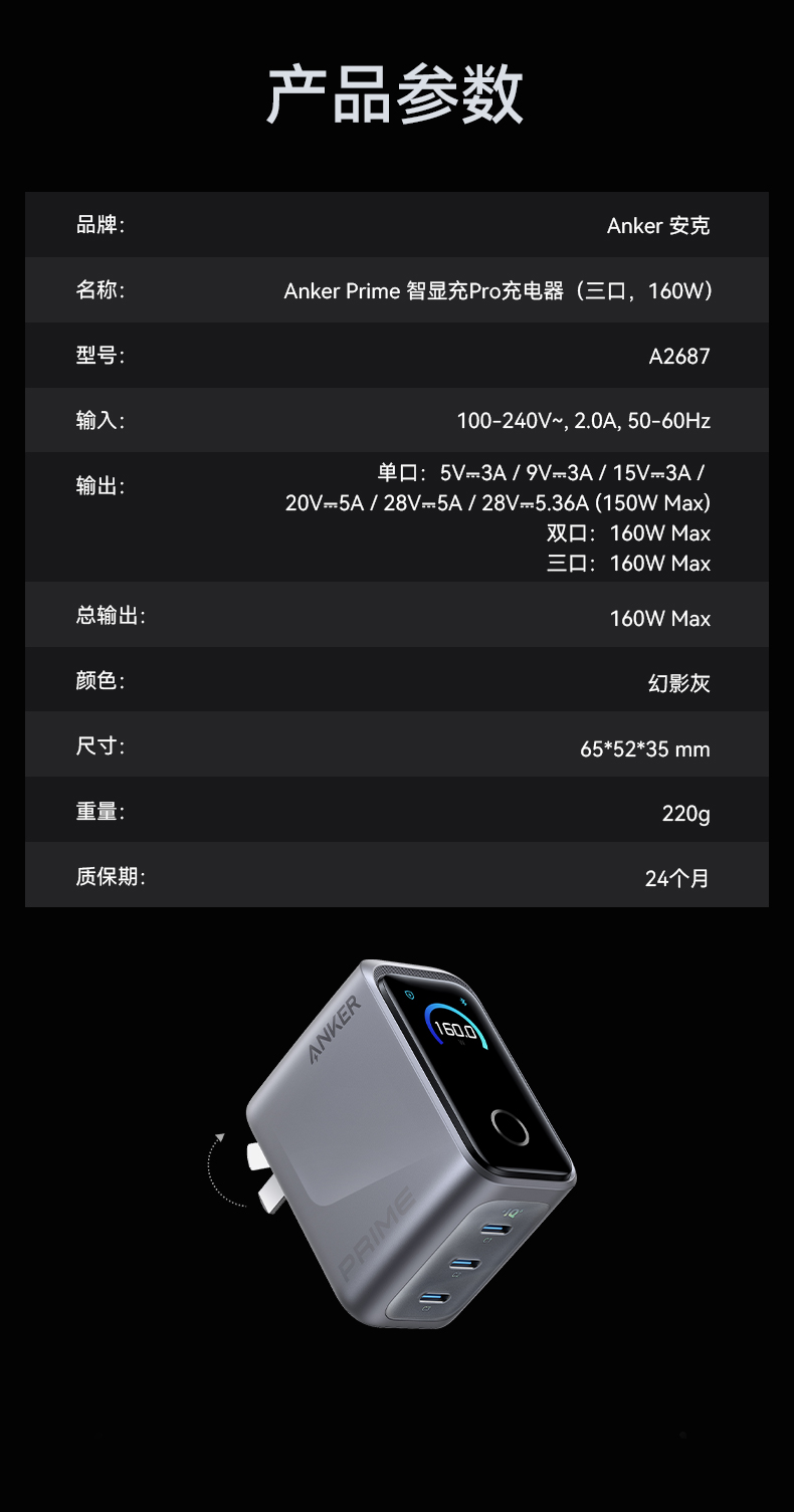 【新品】Anker安克 Prime系列 160W 智显充Pro充电器 A2687