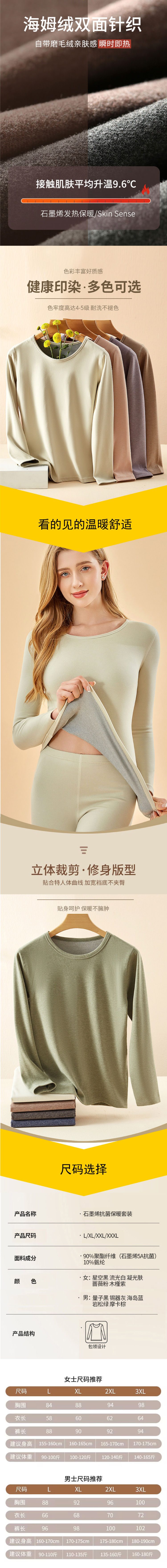 桃内新款蜂窝石墨烯男士保暖内衣套装女秋衣秋裤发热保暖衣SX-705
