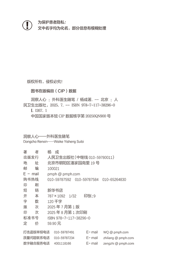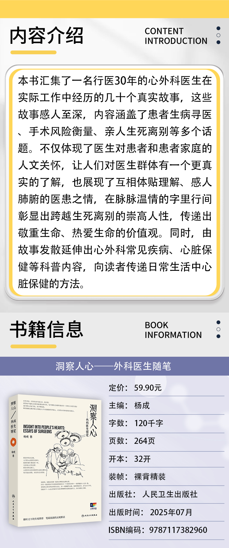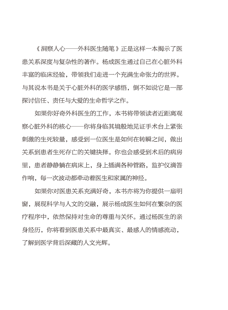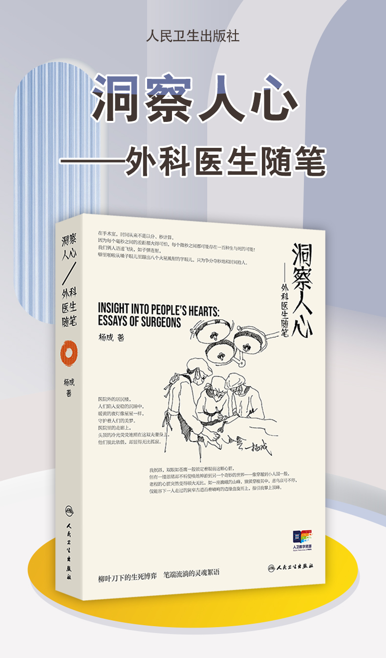 洞察人心——外科医生随笔 杨成 主编 内容涵盖了患者生病寻医 手术风险衡量 亲人生死离别等多个话题9787117382960人民卫生出版社