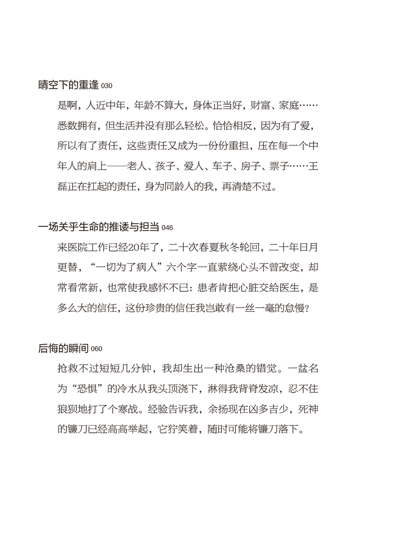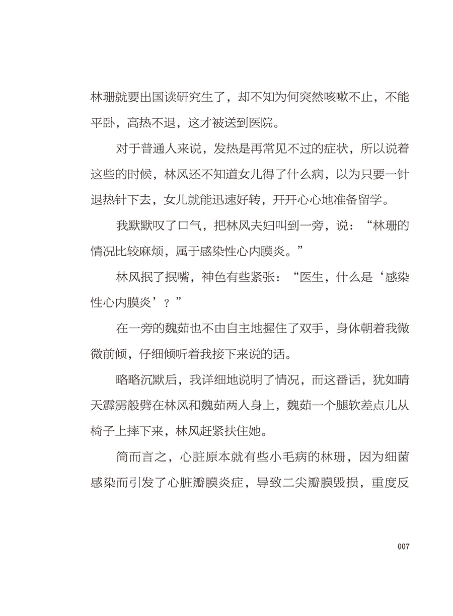 本书汇集了一名行医30年的心外科医生在实际工作中经历的几十个真实故事,这些故事感人至深,内容涵盖了患者生病寻医、手术风险衡量、亲人生死离别等多个话题。不仅体现了医生对患者和患者家庭的人文关怀,让人们对医生群体有一个更真实的了解,也展现了互相体贴理解、感人肺腑的医患之情,在脉脉温情的字里行间彰显出跨越生死离别的崇高人性,传递出敬重生命、热爱生命的价值观。同时,由故事发散延伸出心外科常见疾病、心脏保健等科普内容,向读者传递日常生活中心脏保健的方法。