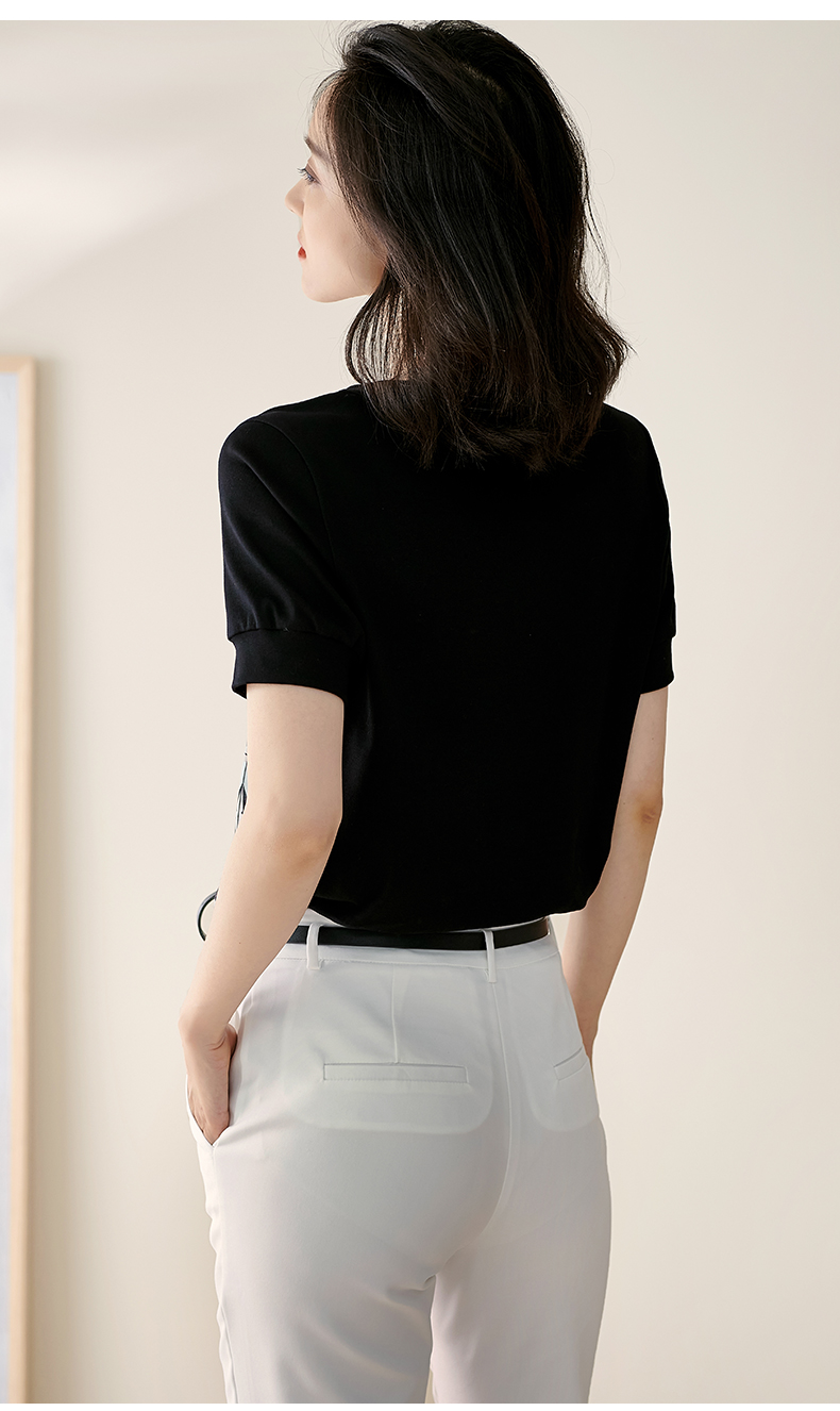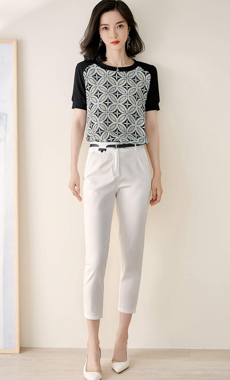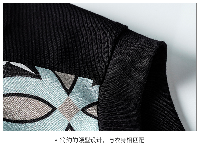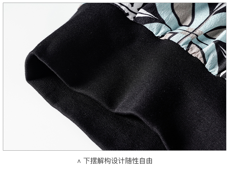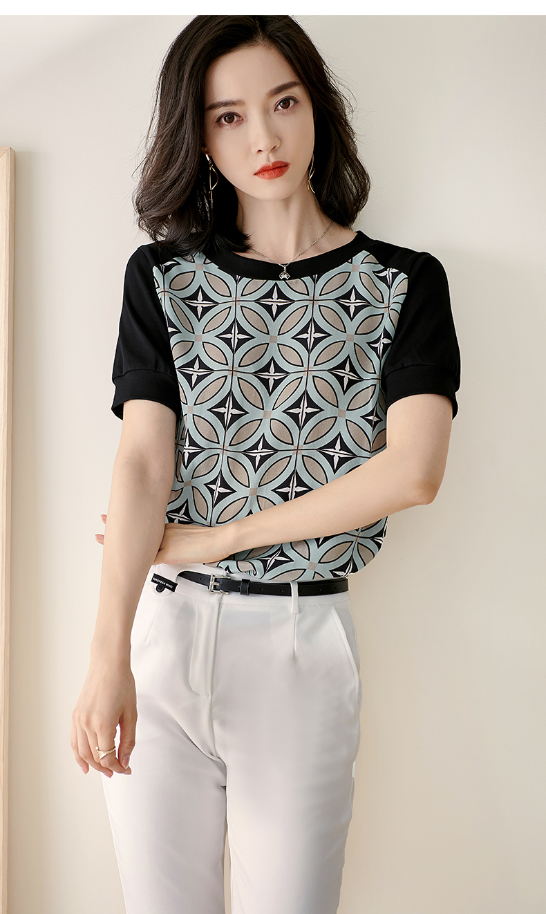 【2XL预售7天】米思阳2026夏季新款时尚几何印花拼接真丝T恤短袖休闲上衣女1627/1194