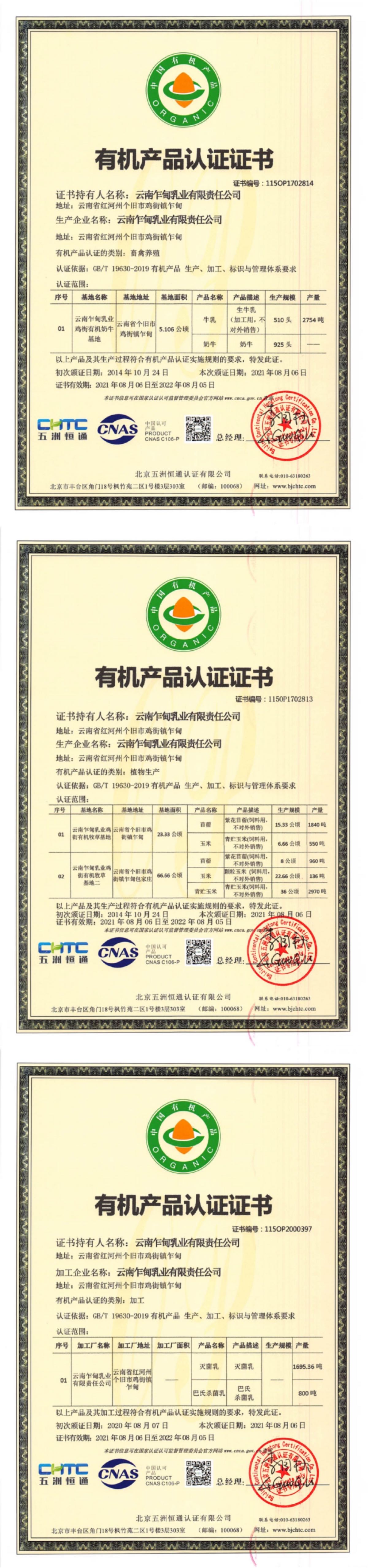 生产加工及运输:采用上述符合有机标准的生牛乳进行加工,不添加任何添加剂,生产过程不会受到污染,采用无菌灌装、生牛乳进入工厂成品出厂的检测超过60项(国标26项)。
