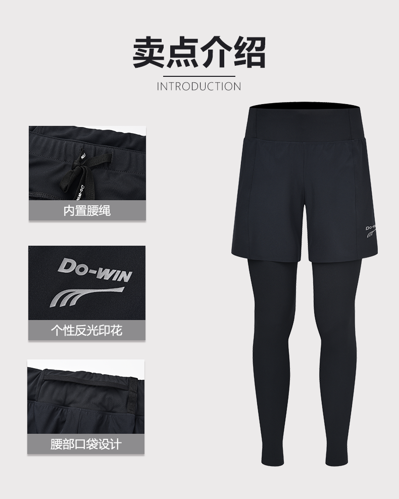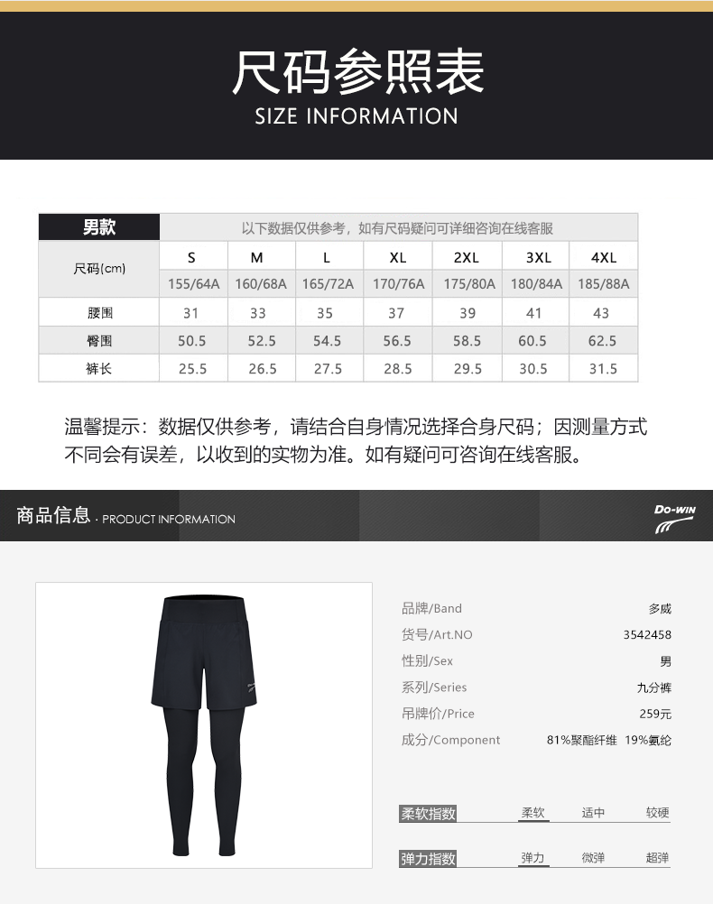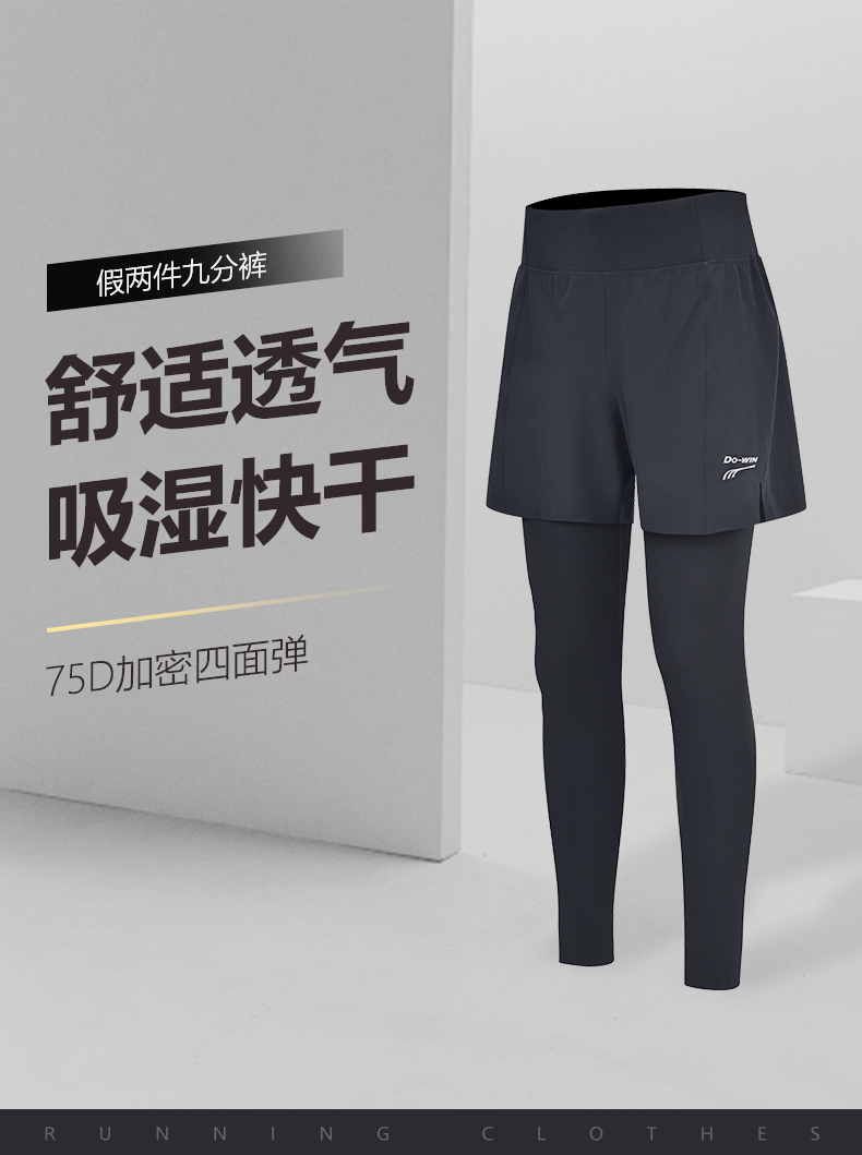 多威弹力压缩裤子男吸湿快干透气假两件九分裤3542458