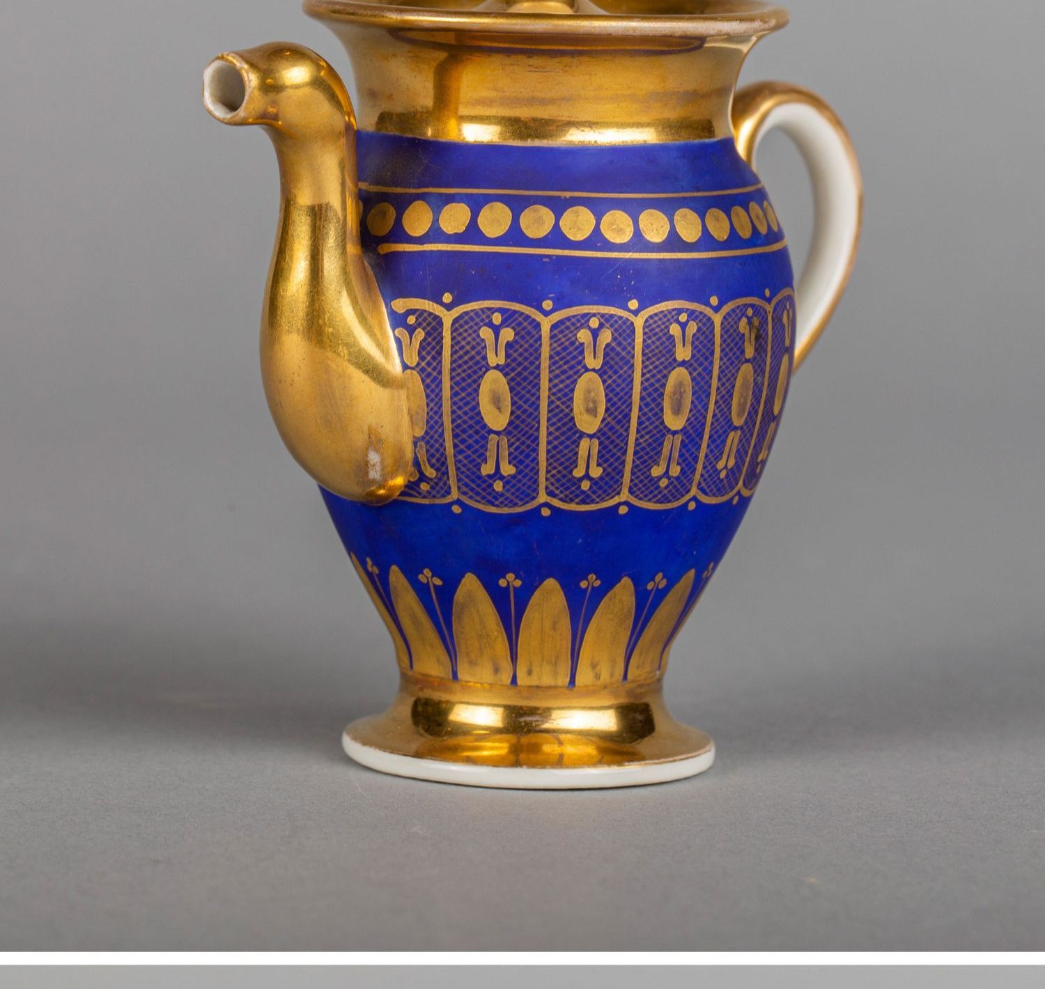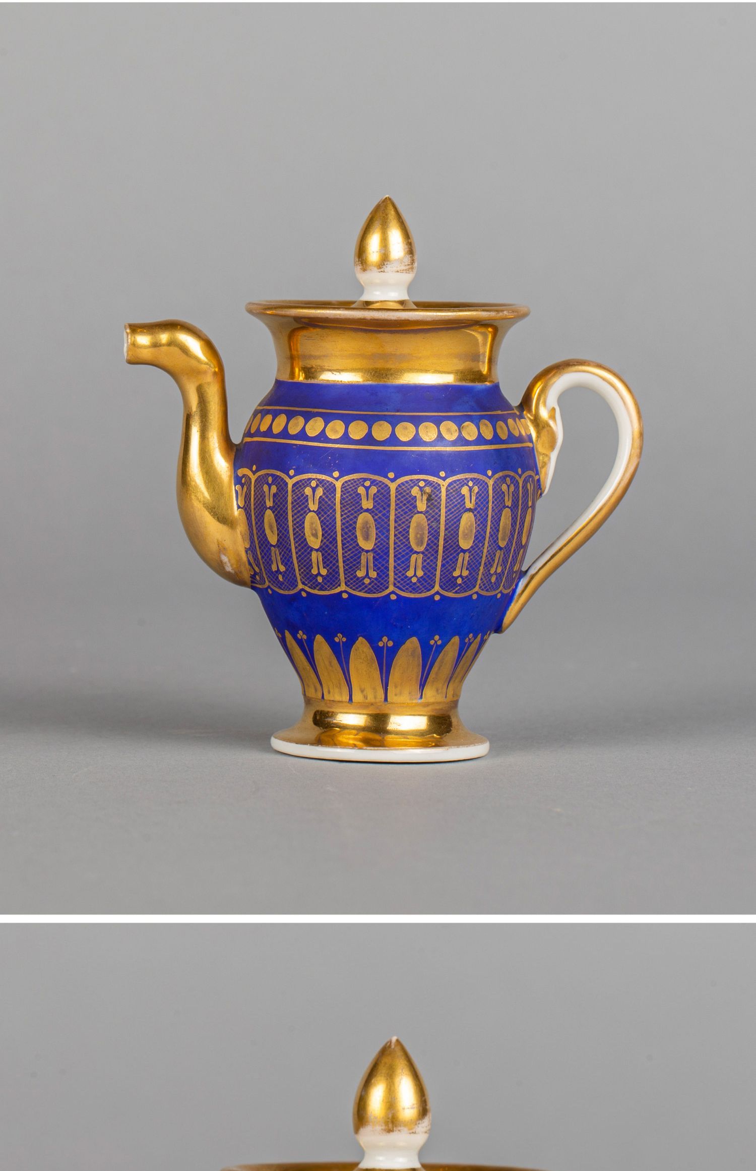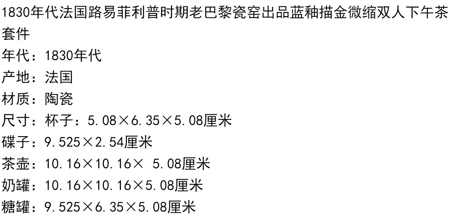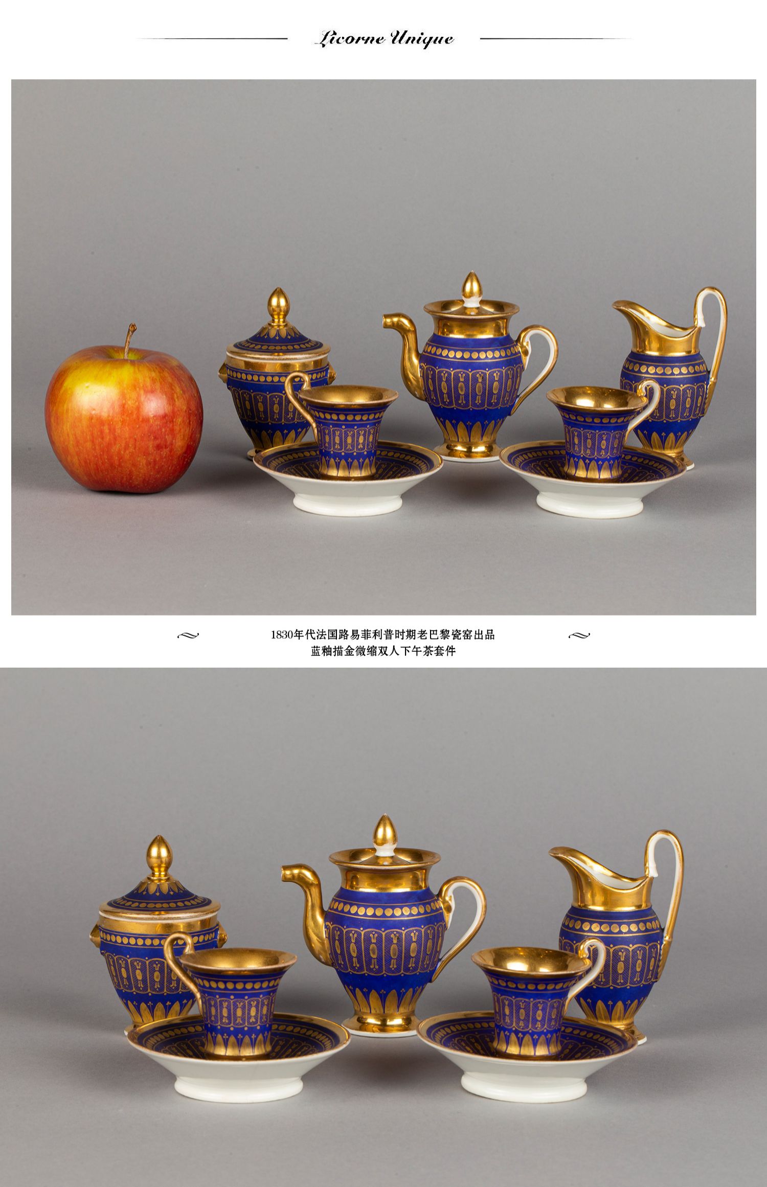 独角鹿西洋古董法国老巴黎瓷窑蓝釉描金微缩双人下午茶瓷器套装