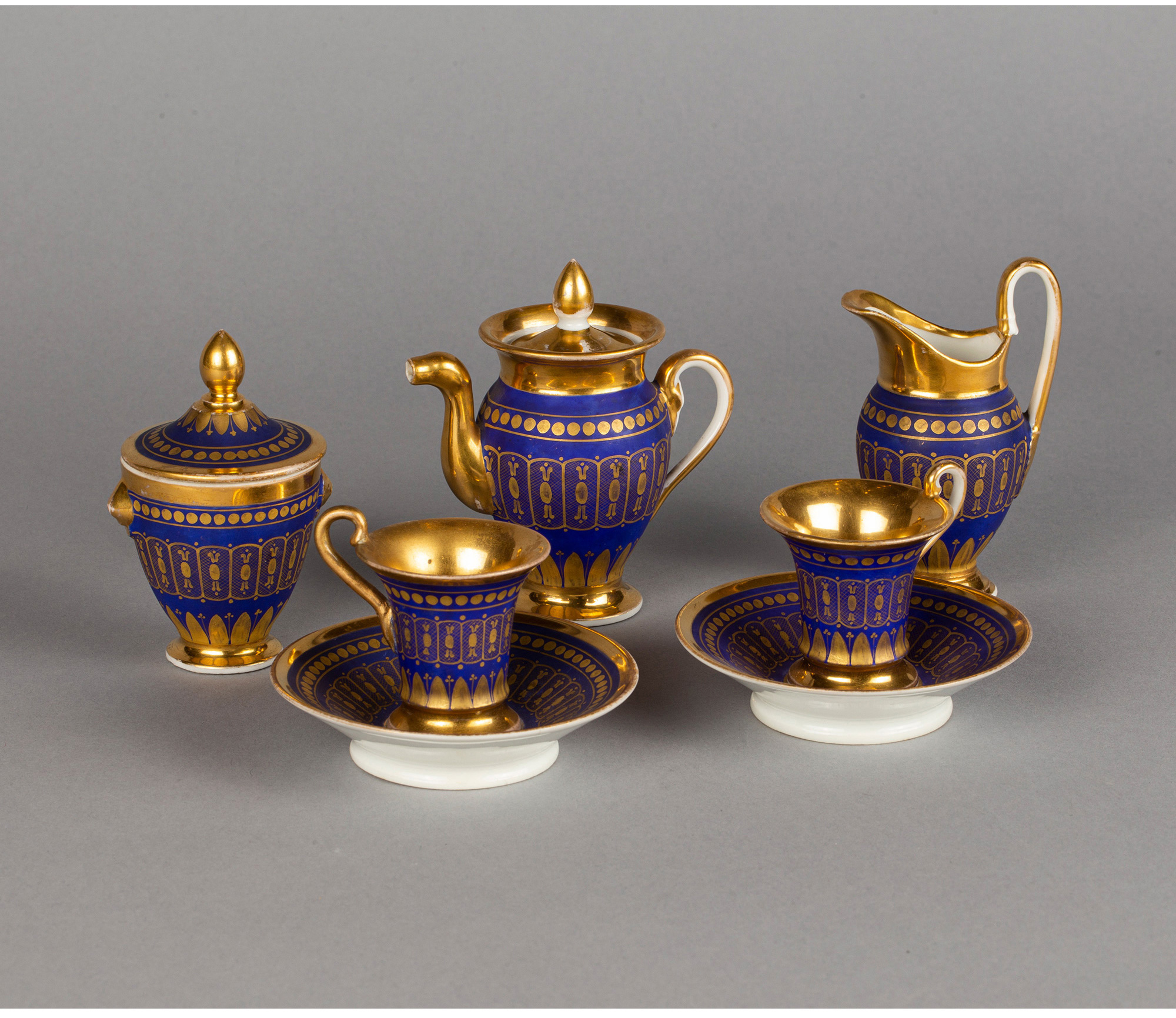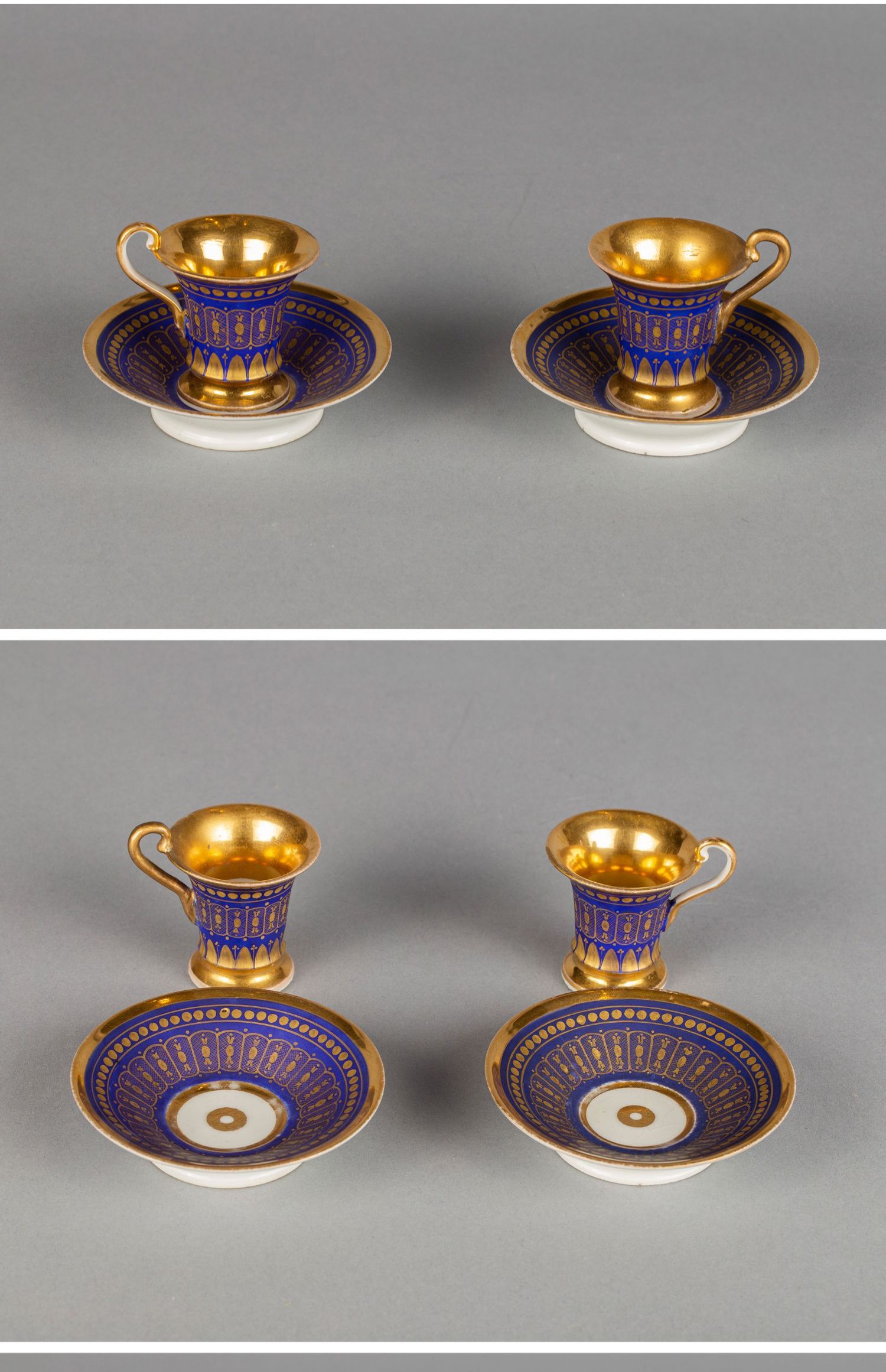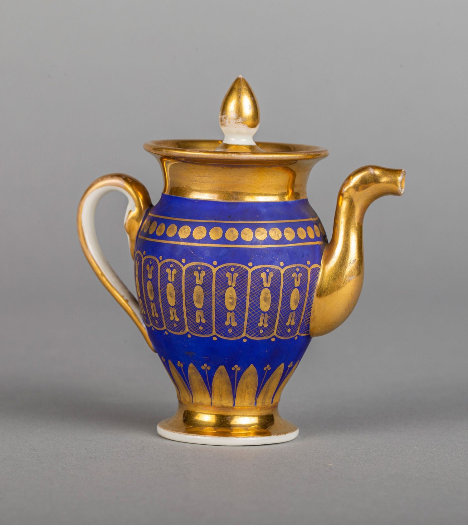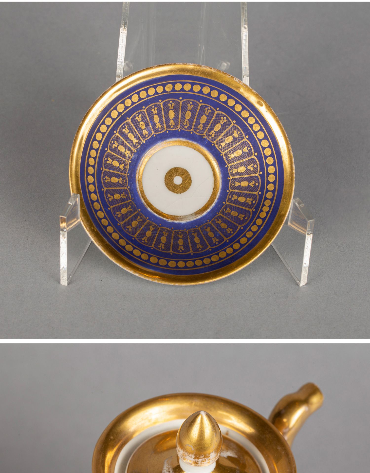 独角鹿西洋古董法国老巴黎瓷窑蓝釉描金微缩双人下午茶瓷器套装