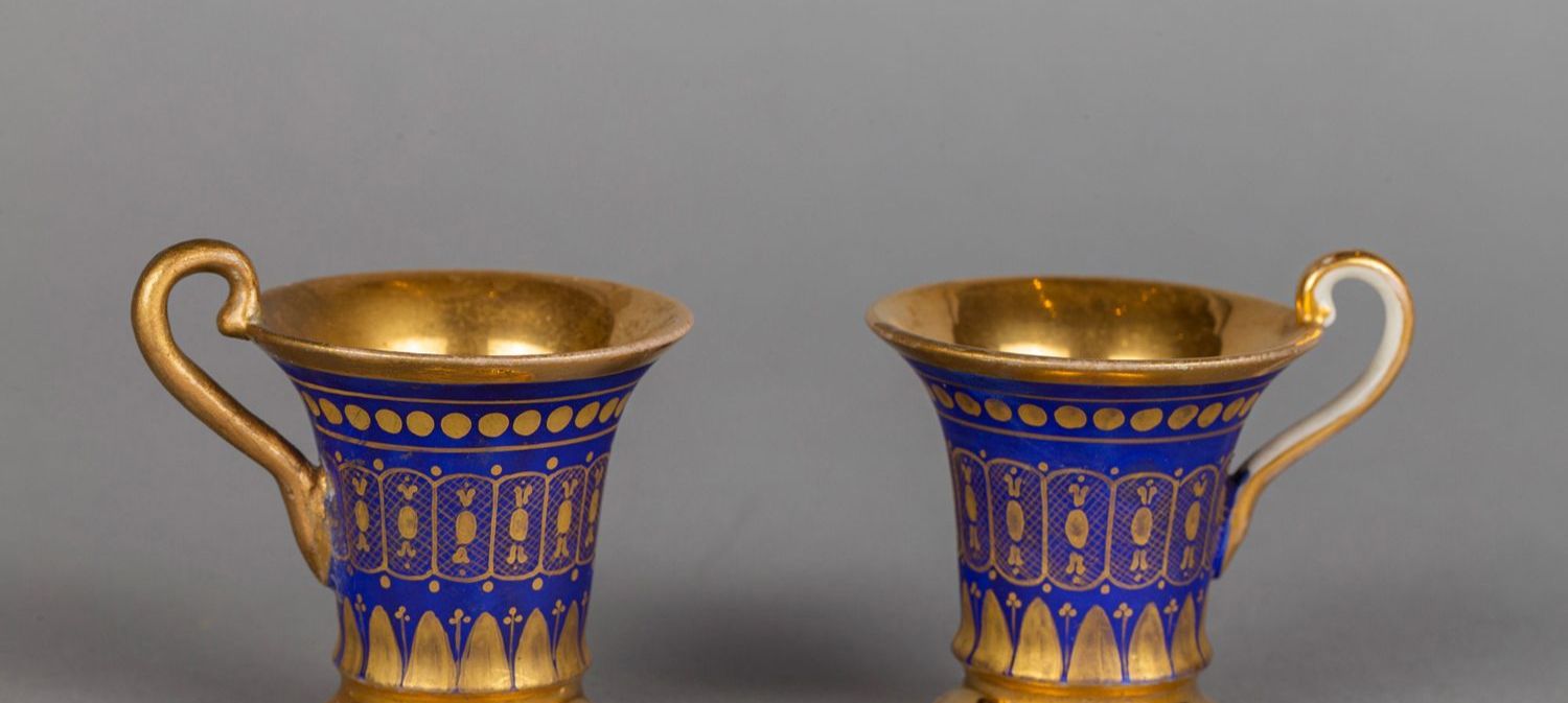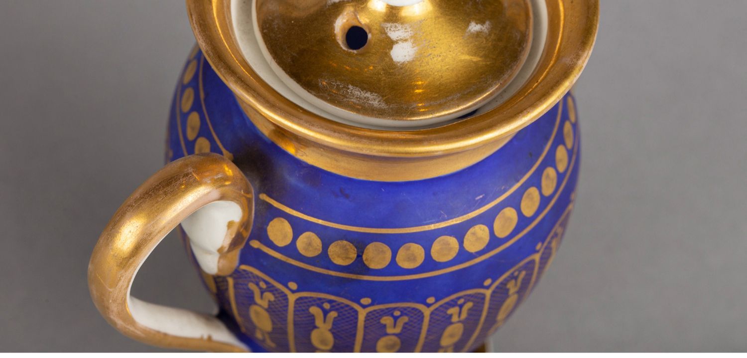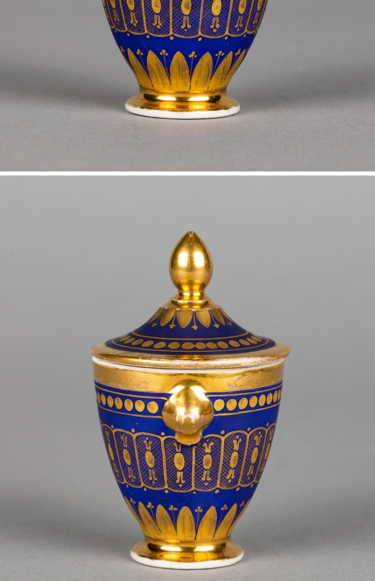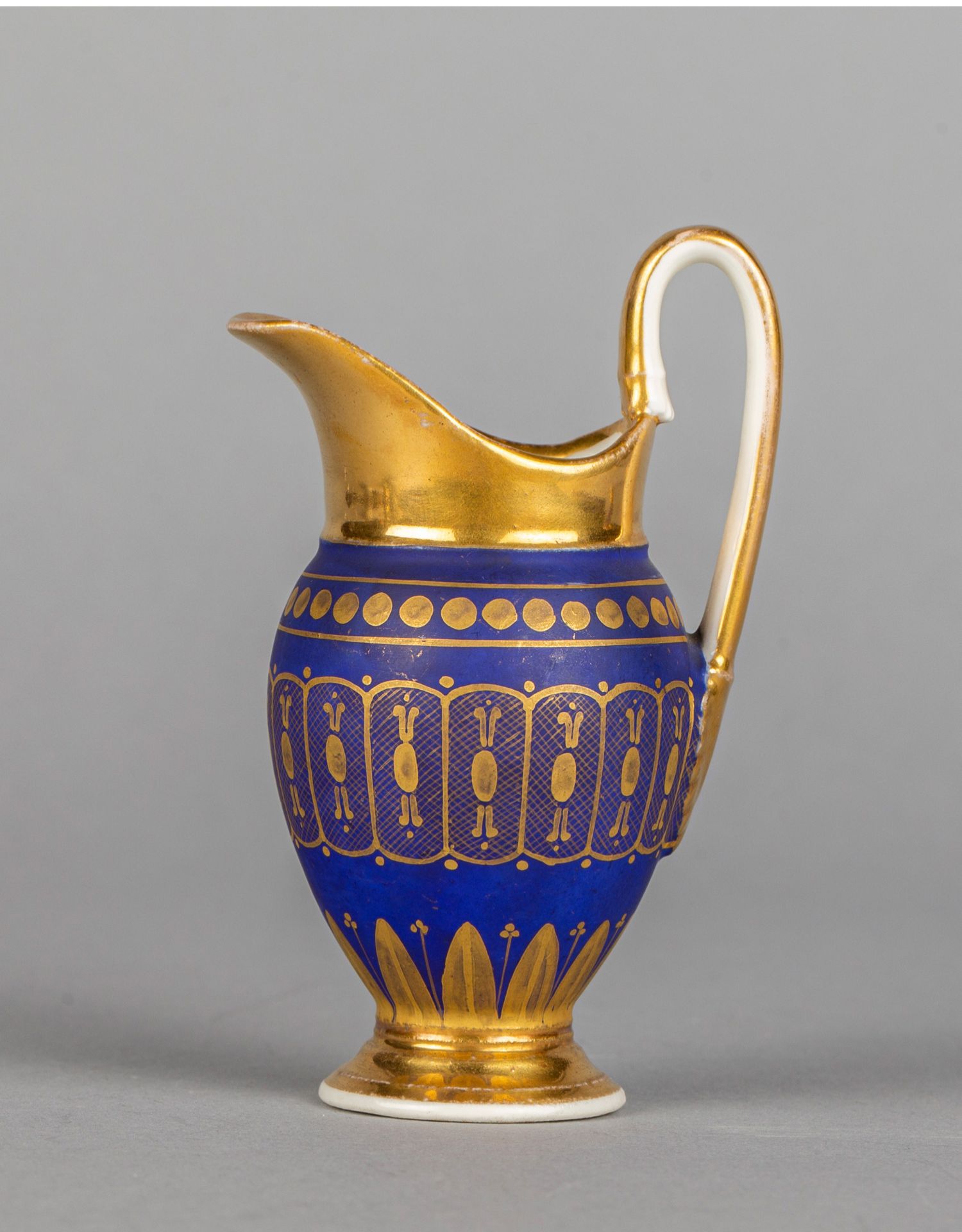 独角鹿西洋古董法国老巴黎瓷窑蓝釉描金微缩双人下午茶瓷器套装