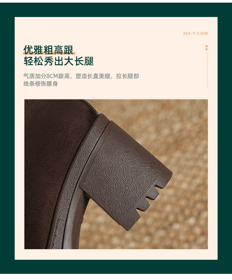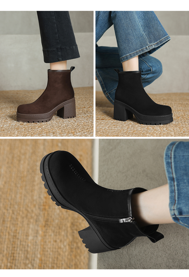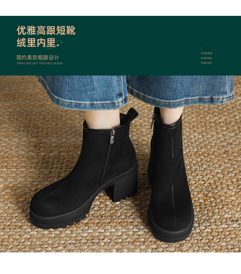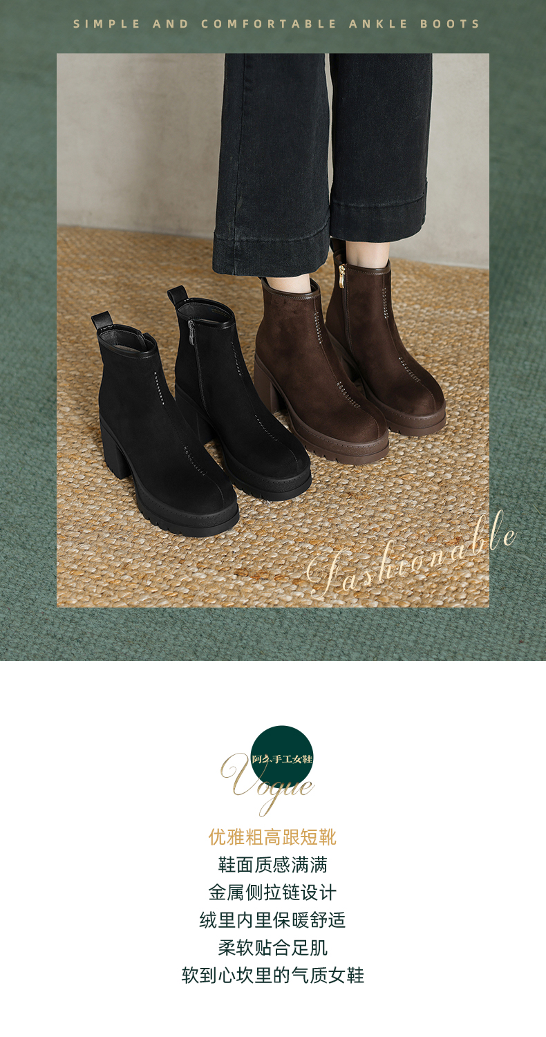 阿么手工女鞋防水台高跟靴子冬季新款增高加绒法式通勤短靴女8CM
