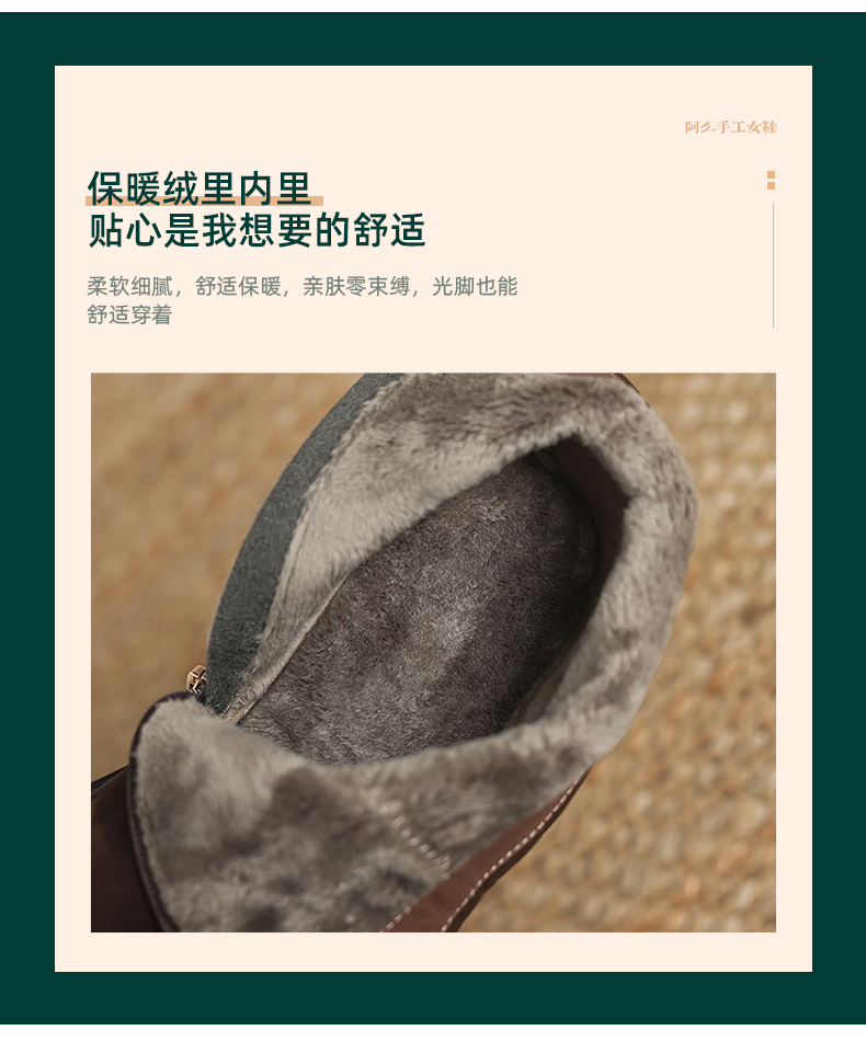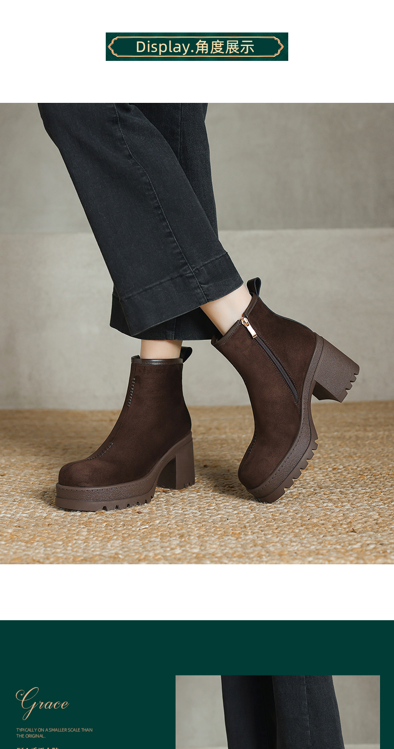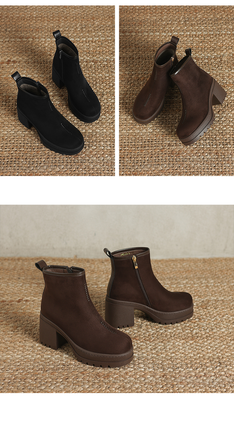 阿么手工女鞋防水台高跟靴子冬季新款增高加绒法式通勤短靴女8CM