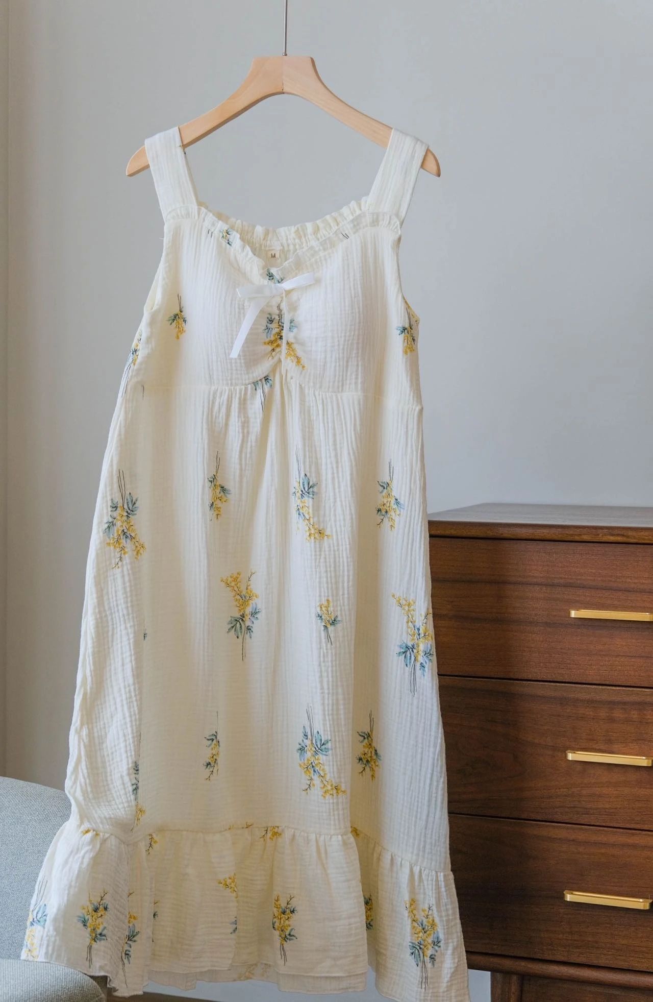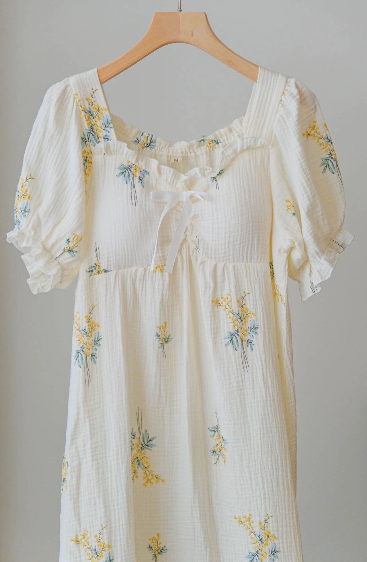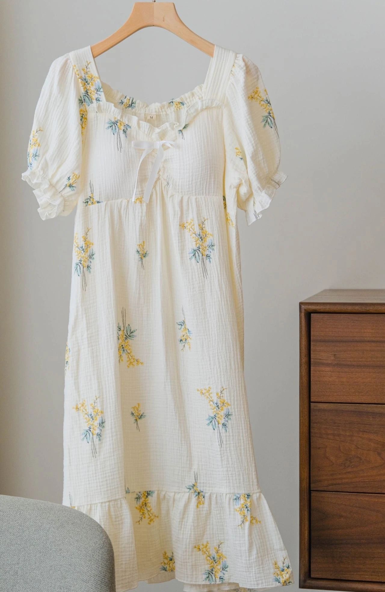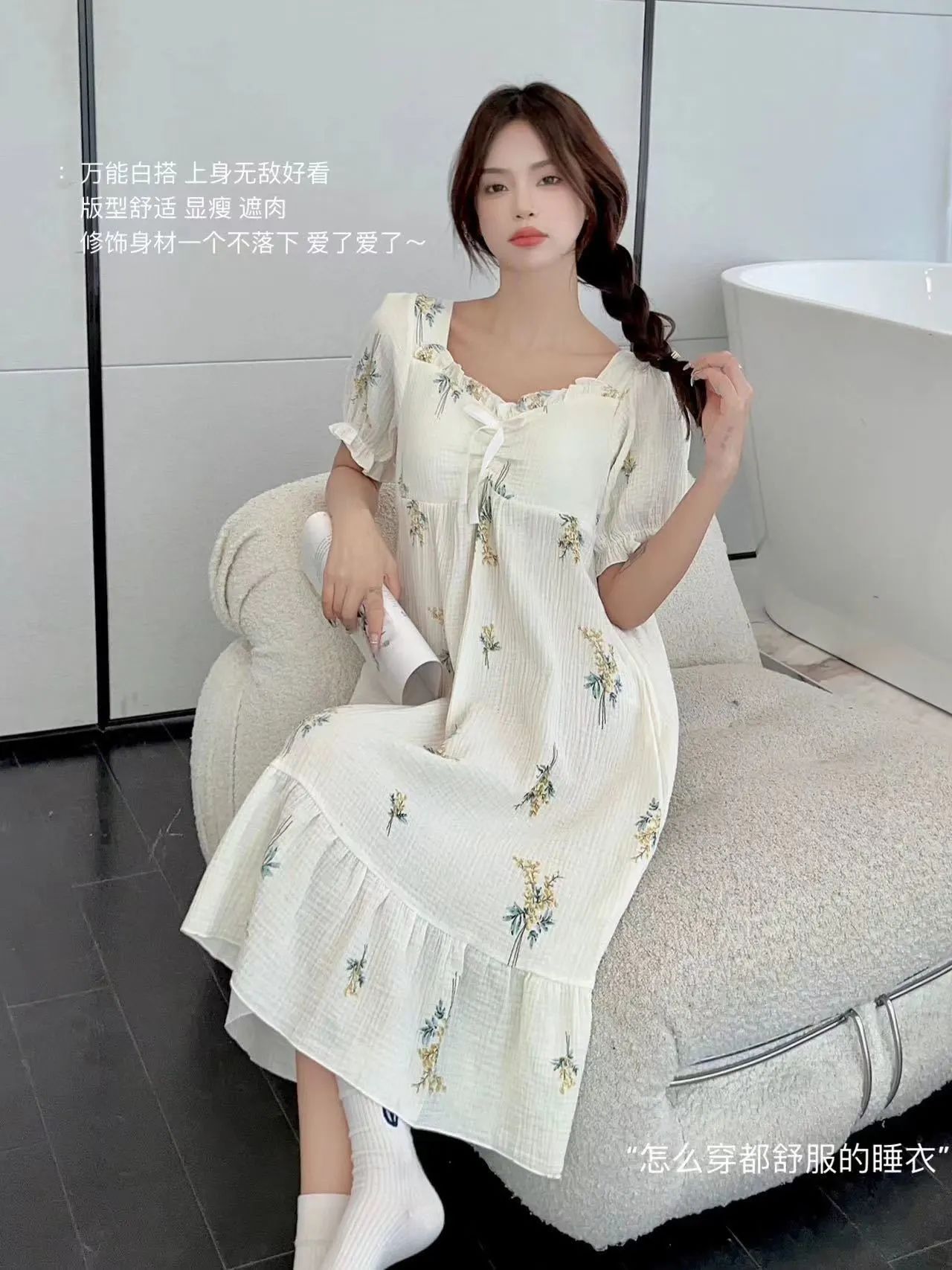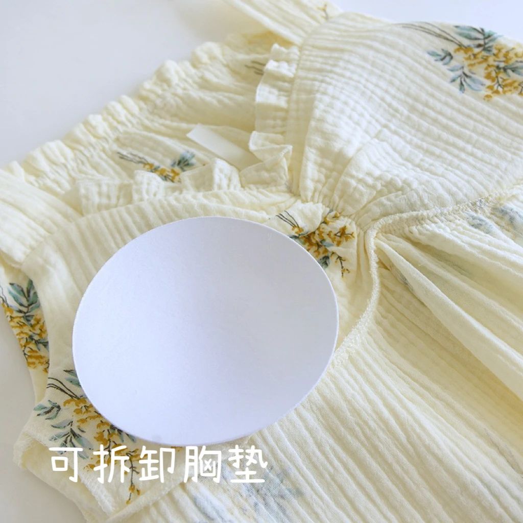 纯棉!双层纱睡裙/套装【半价清仓】夏日铃兰系列多款可选~婴幼儿A类棉纱面料泡泡袖+胸部别致抽褶设计法式领口+自带胸垫设计,吸汗透气、软糯又清爽!