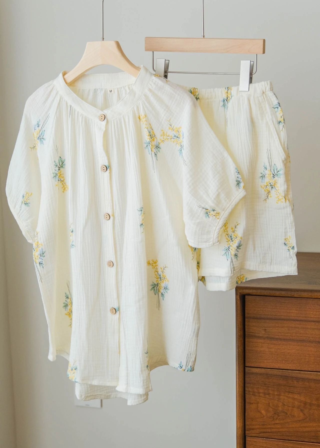 这款睡衣采用了100%纯棉的双层纱布,都知道纱布柔软,而且穿起来越穿越柔软。