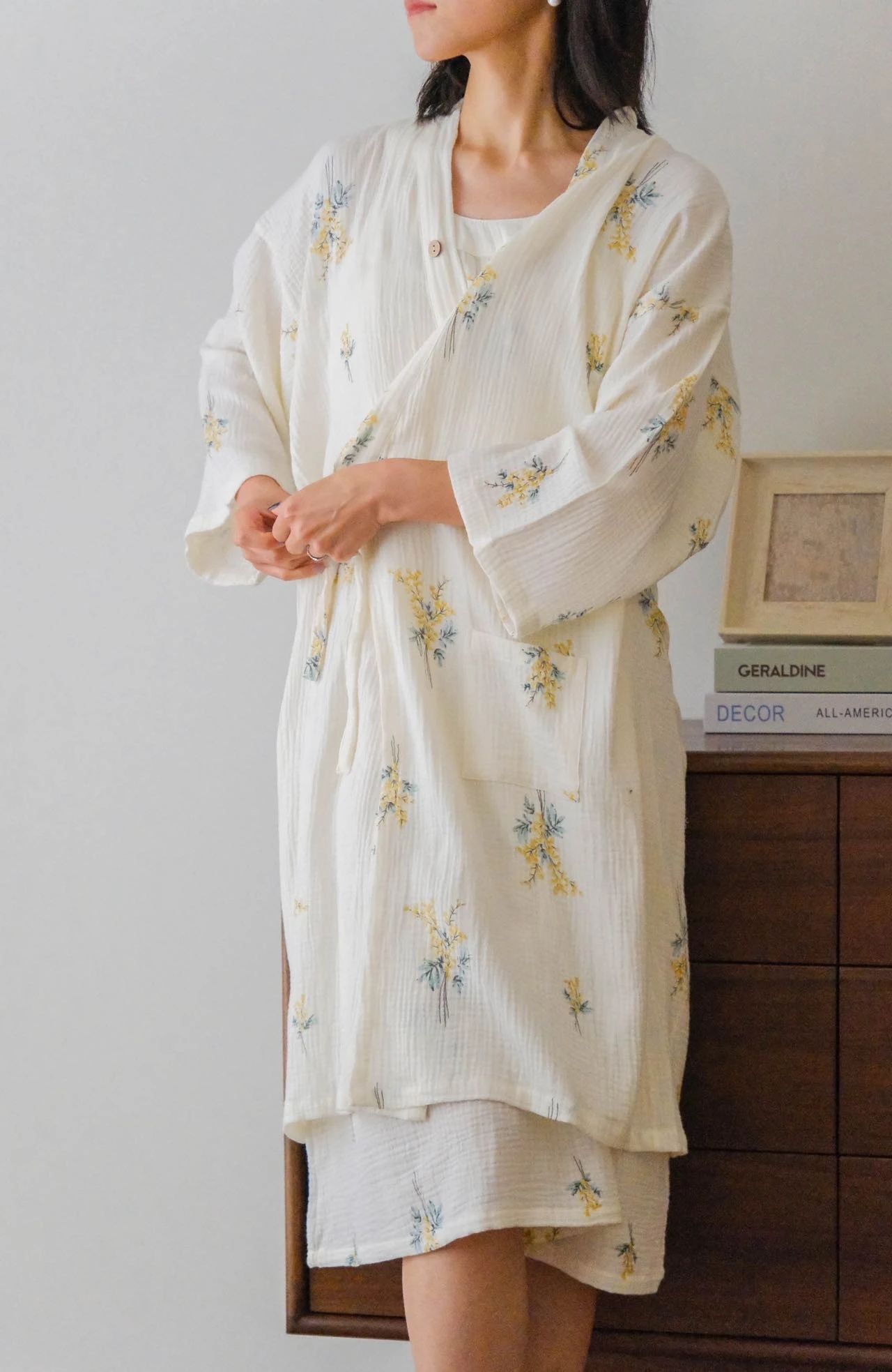 我自己就有一个纱布睡衣已经穿了两年,属于那种越穿越上瘾的感觉,到今年夏天真的离不开的节奏,太太太舒服了。