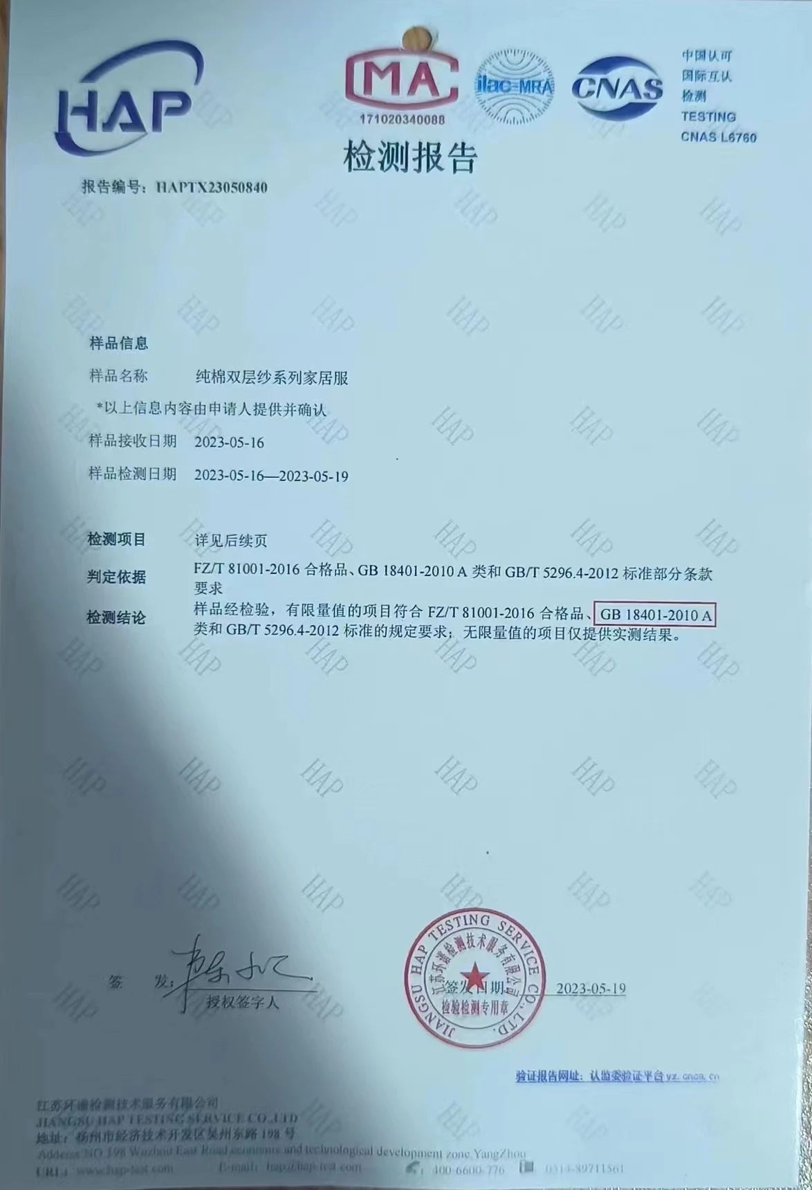 虽然是成人家居服,但是咱们这款夏日铃兰的面料确采用了母婴级别的A类面料,不含甲醛等对人体有害的物质。