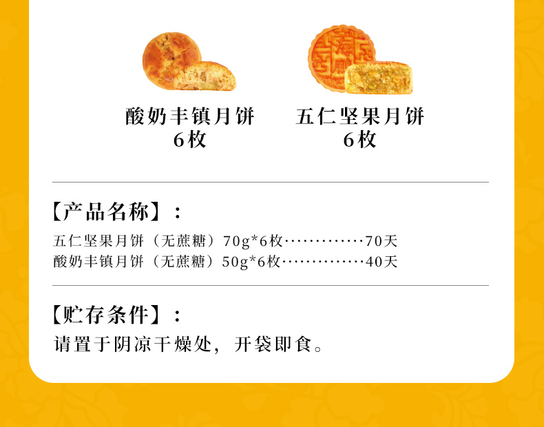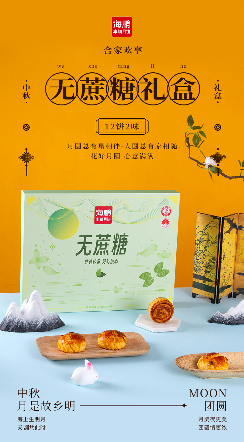 海鹏丰镇月饼无蔗糖礼盒月饼6饼2味(12枚)