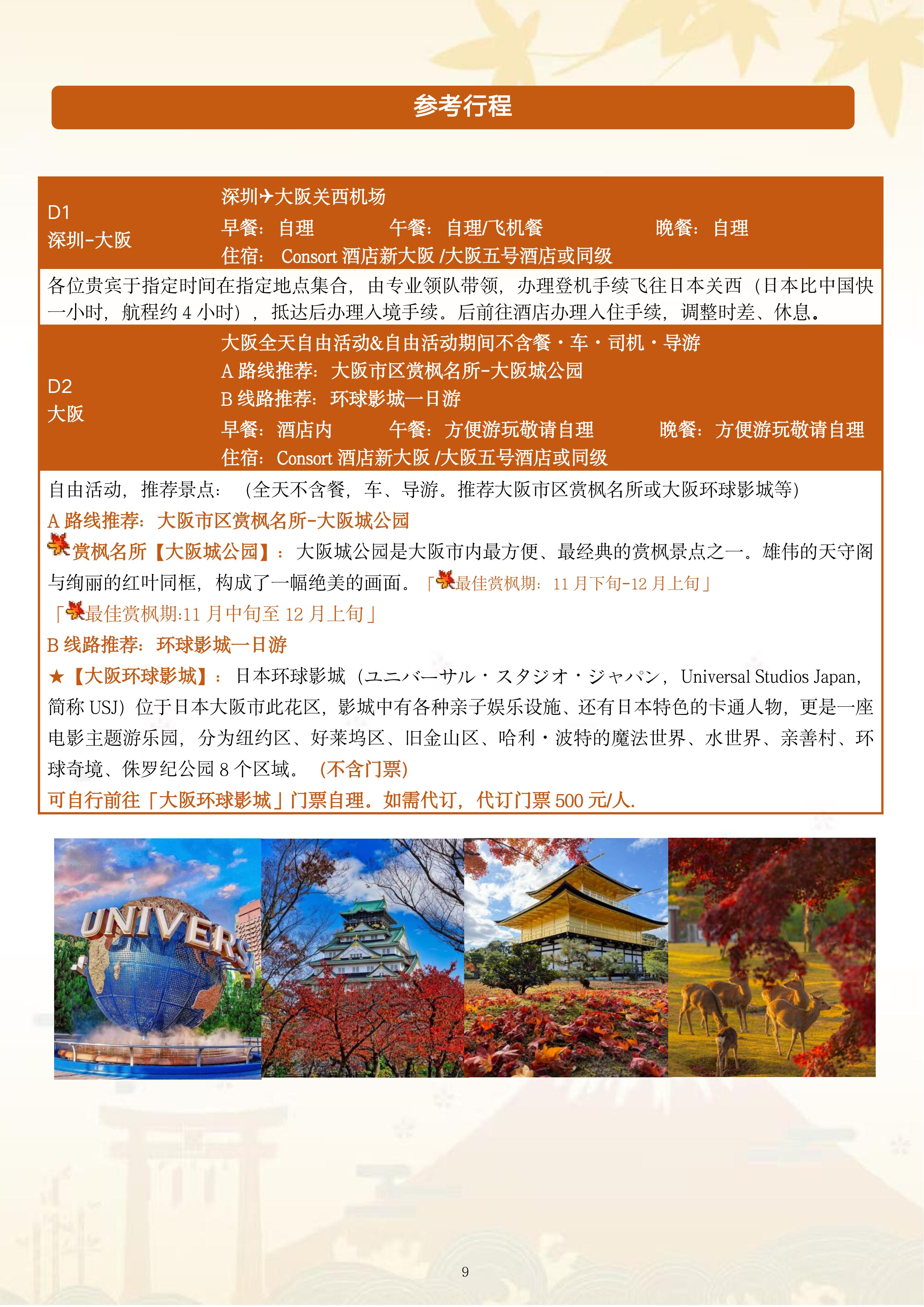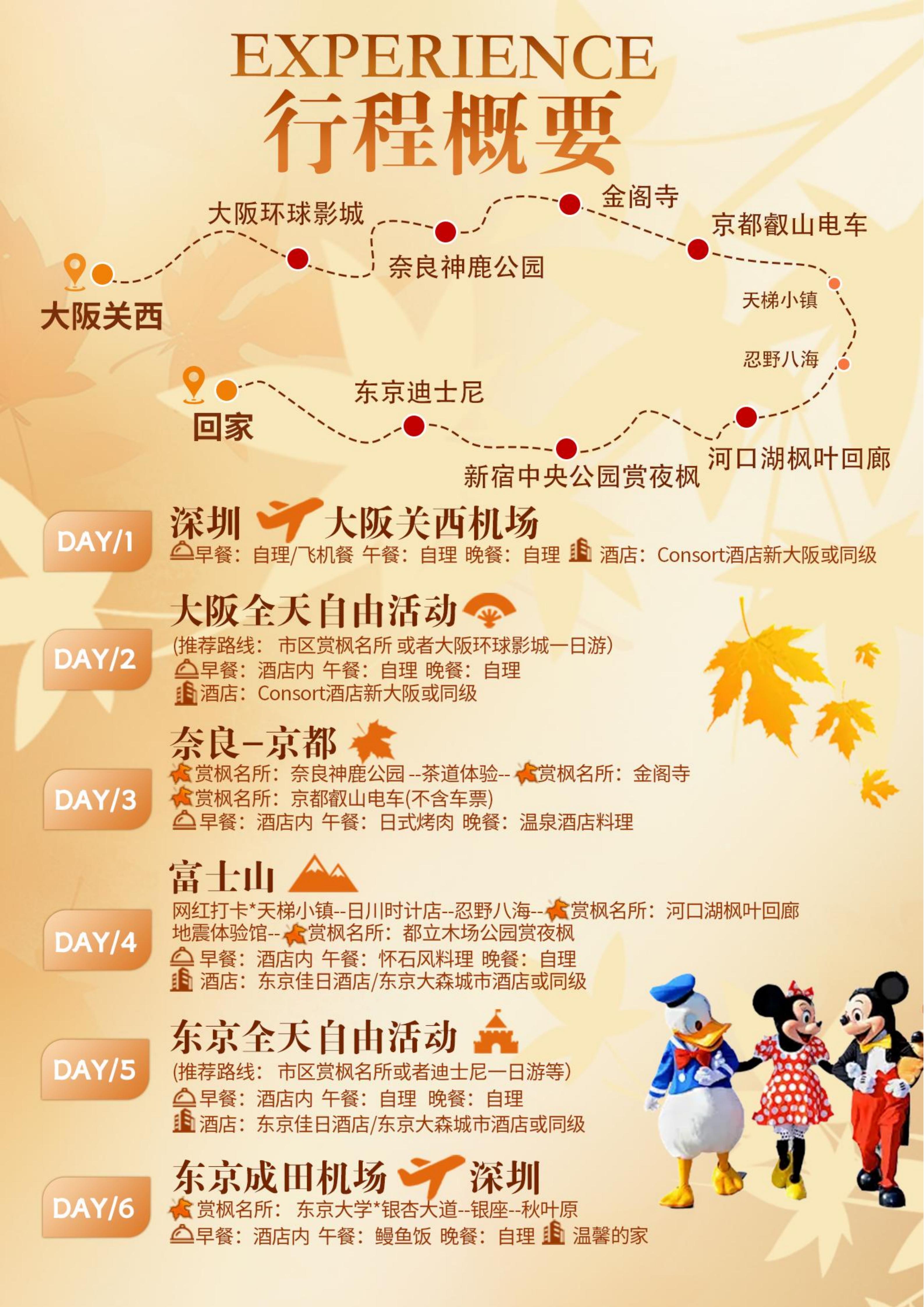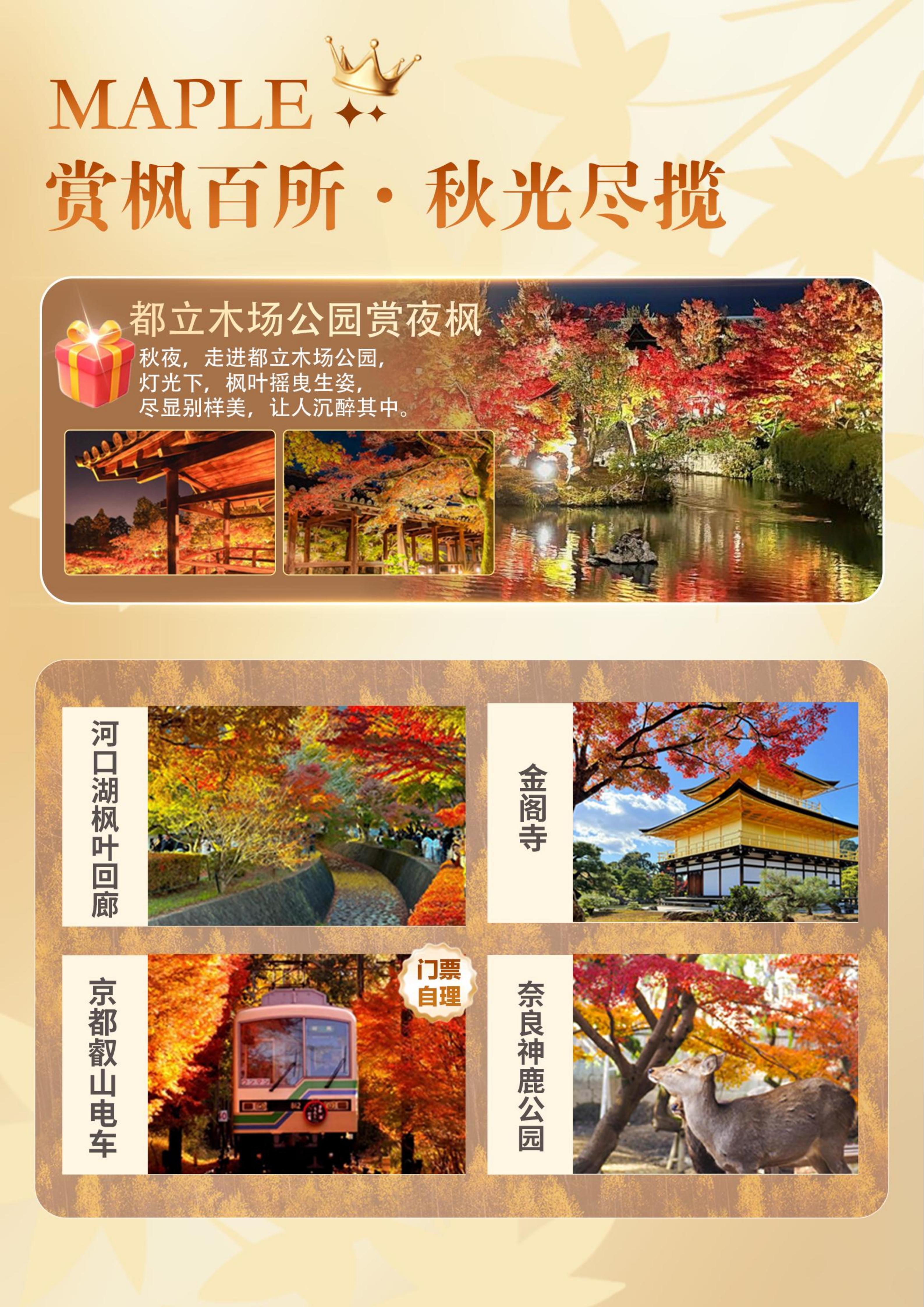 【秋季赏枫】<日本本州6天5晚半自助游·深圳直飞往返>东京+大阪各1天自由活动*河口湖枫叶回廊*京都叡山电车*银杏大道*奈良神鹿公园金阁寺*东京大学银杏大道*秋叶原*银座