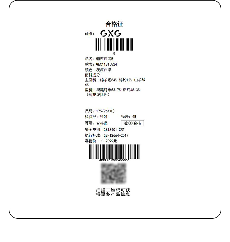 GXG男装 双排扣修身西装 冬季热卖西服GEX11315824