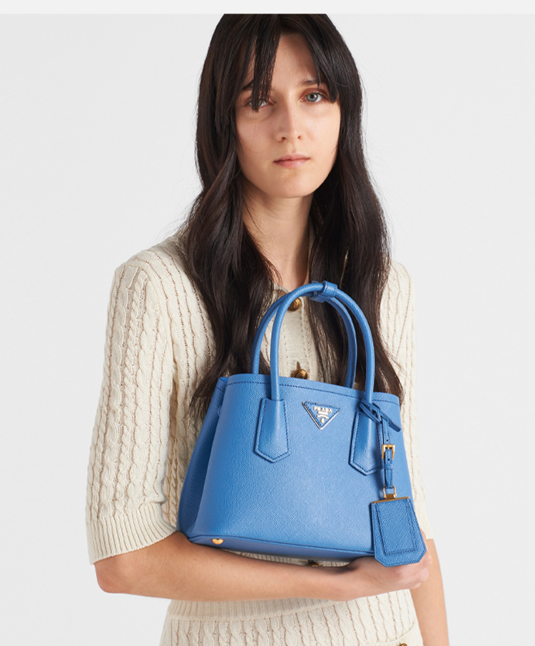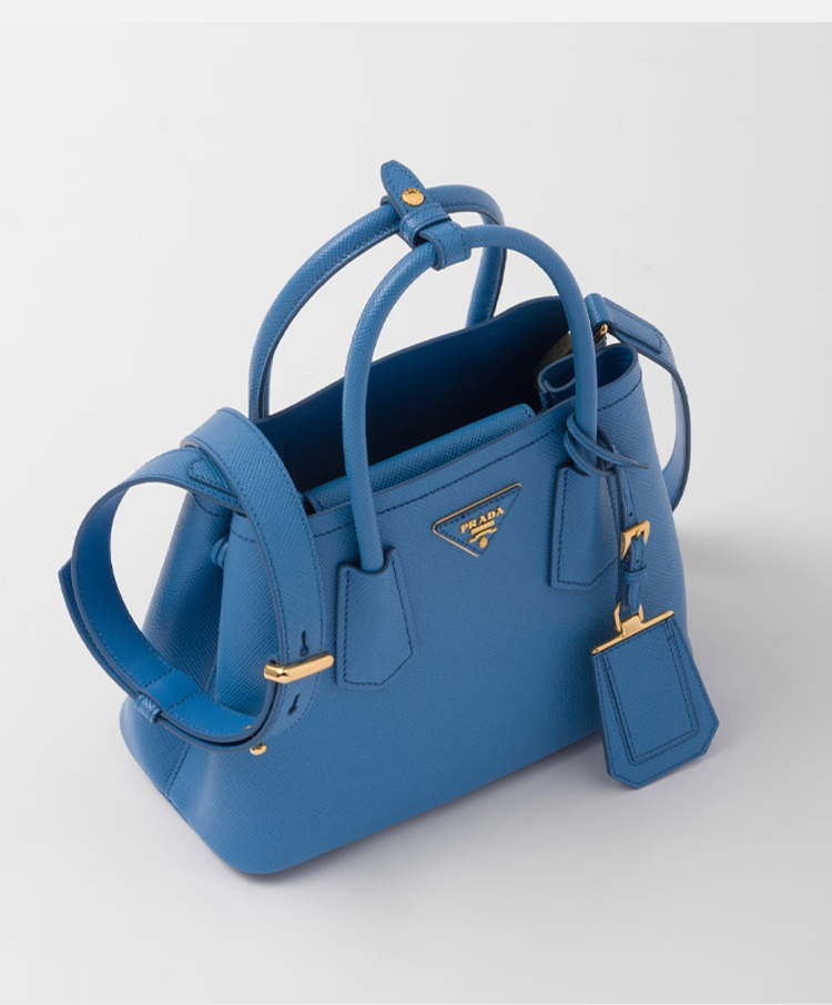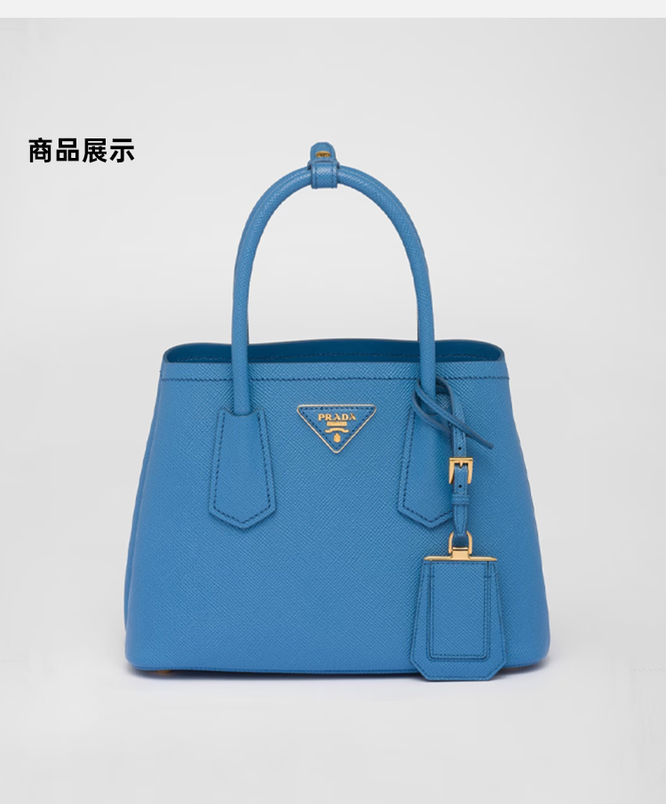 PRADA 普拉达 女士 Double Saffiano 皮革三角形徽标迷你提挎包 浅蓝色 1BG443 2A4A F0V98 XOO