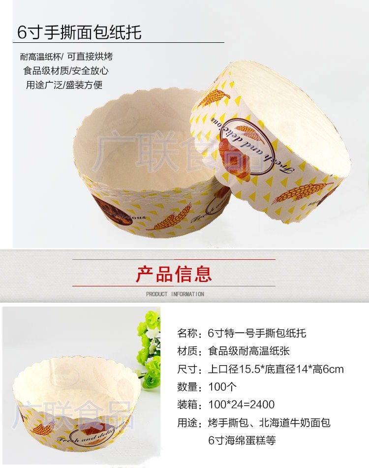 6寸 高温纸杯 手撕包面包纸托 北海道戚风蛋糕纸杯 蛋糕托 100入/5入两种规格