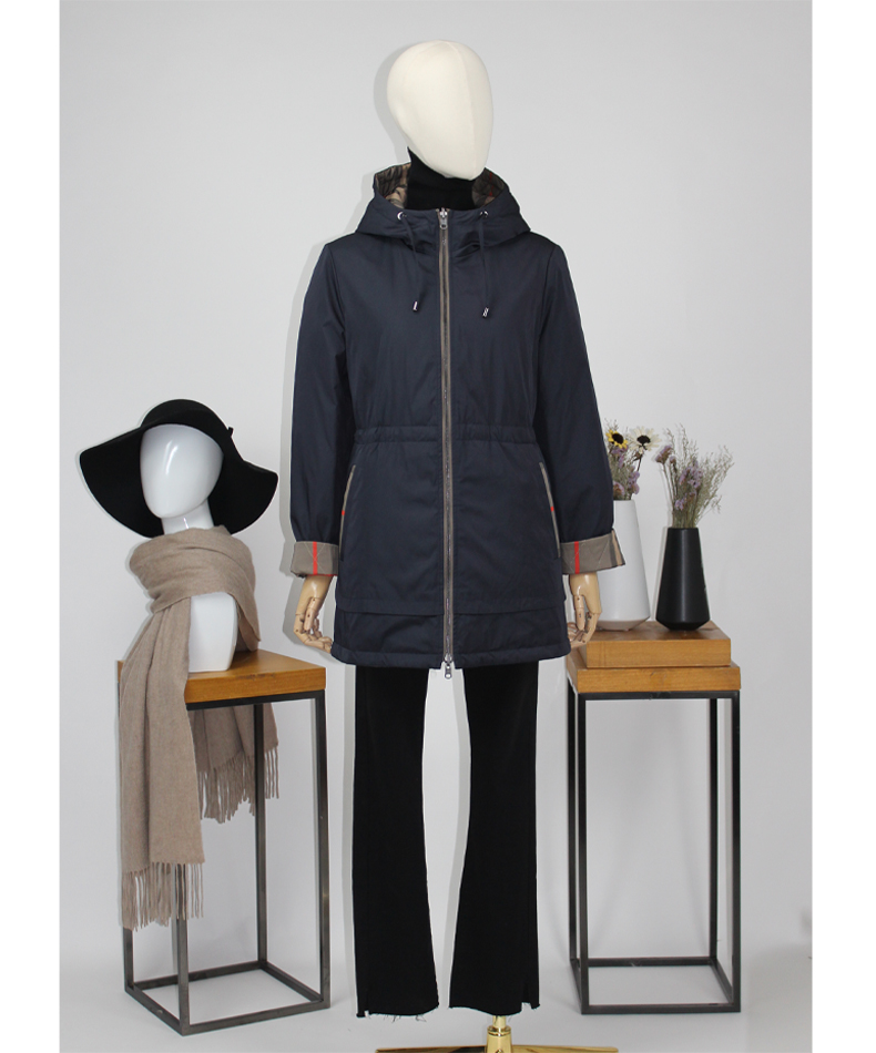 FOCALS福柯斯新款正反两穿薄棉服中长款拉链连帽棉服FRGDE693BZ