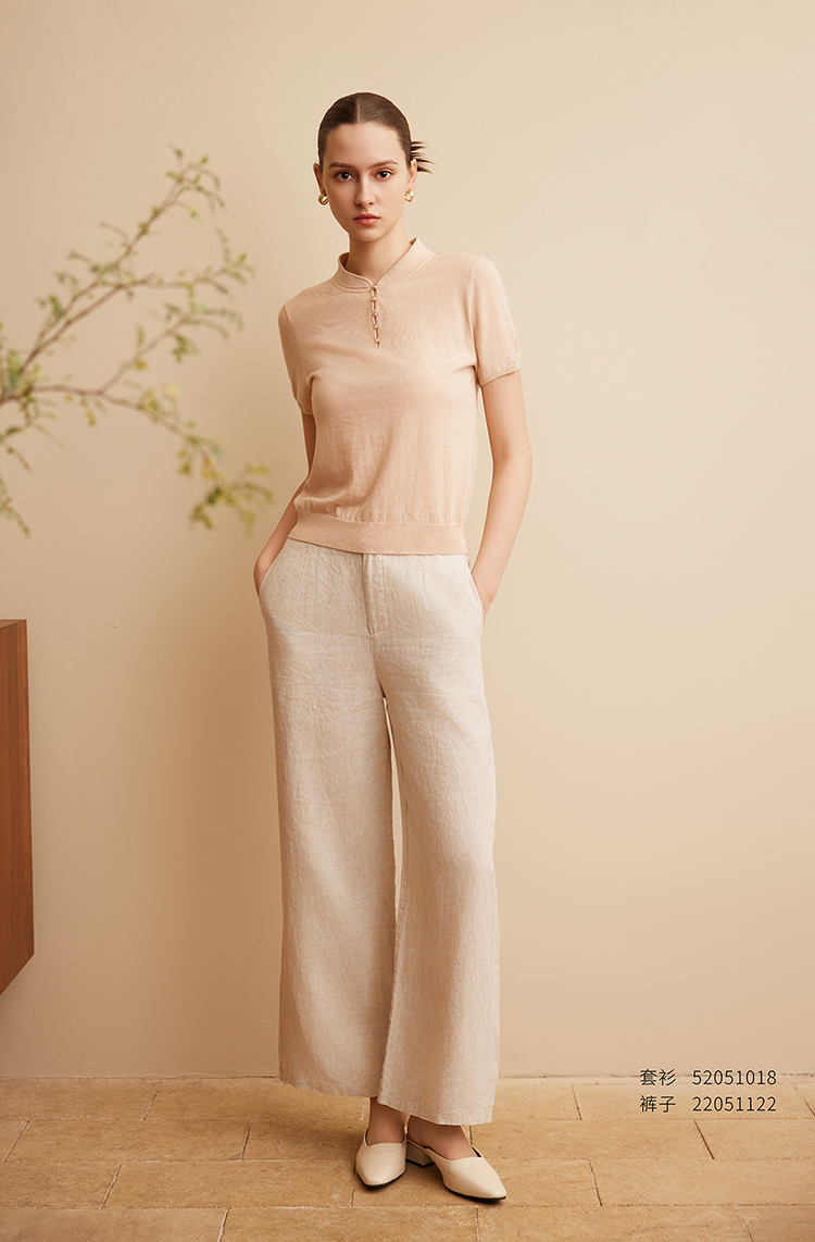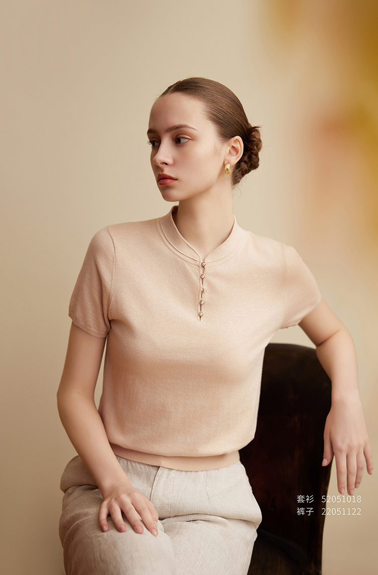 【圆领短袖针织套衫】25年春夏新品女士国风盘扣薄款套衫洋气百搭上衣