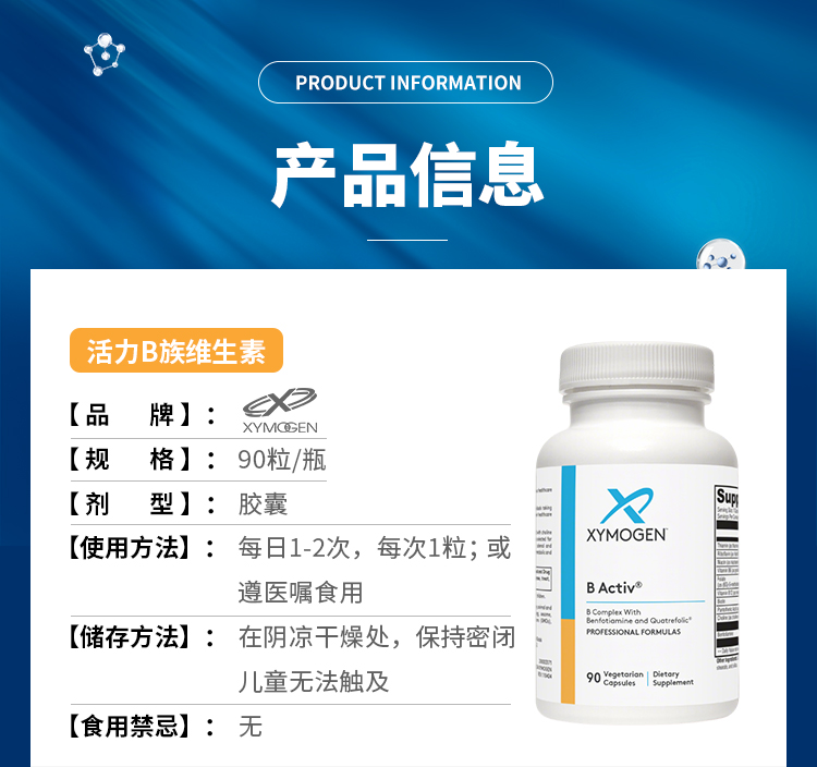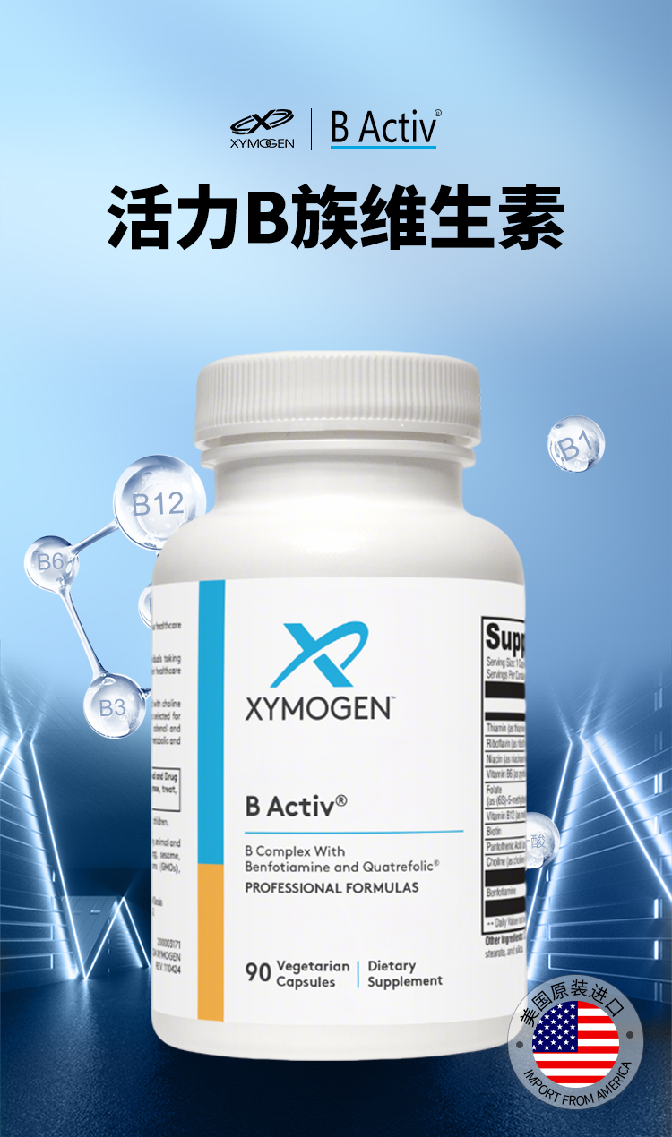 【效期至27年6月】活力B族维生素 XYMOGEN B Activ 90粒/瓶