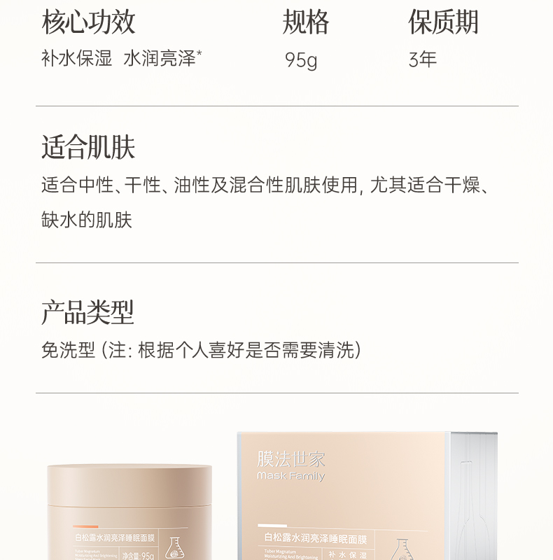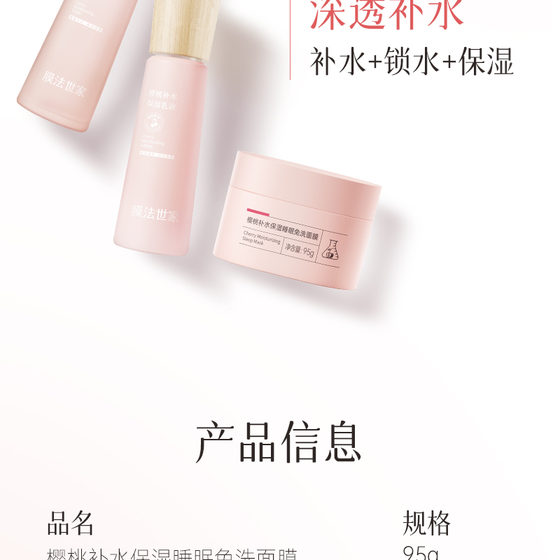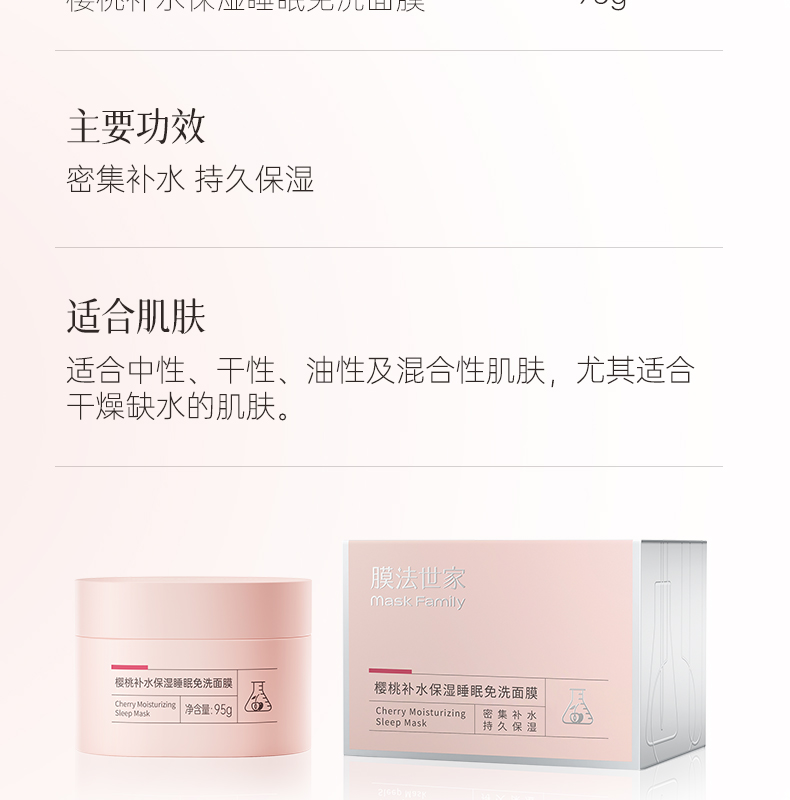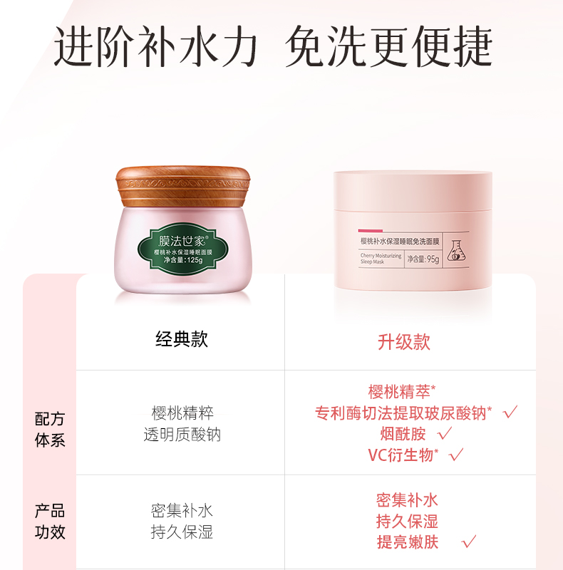 【买一送一|¥69/2瓶】膜法世家樱桃补水保湿睡眠免洗面膜125g*2瓶