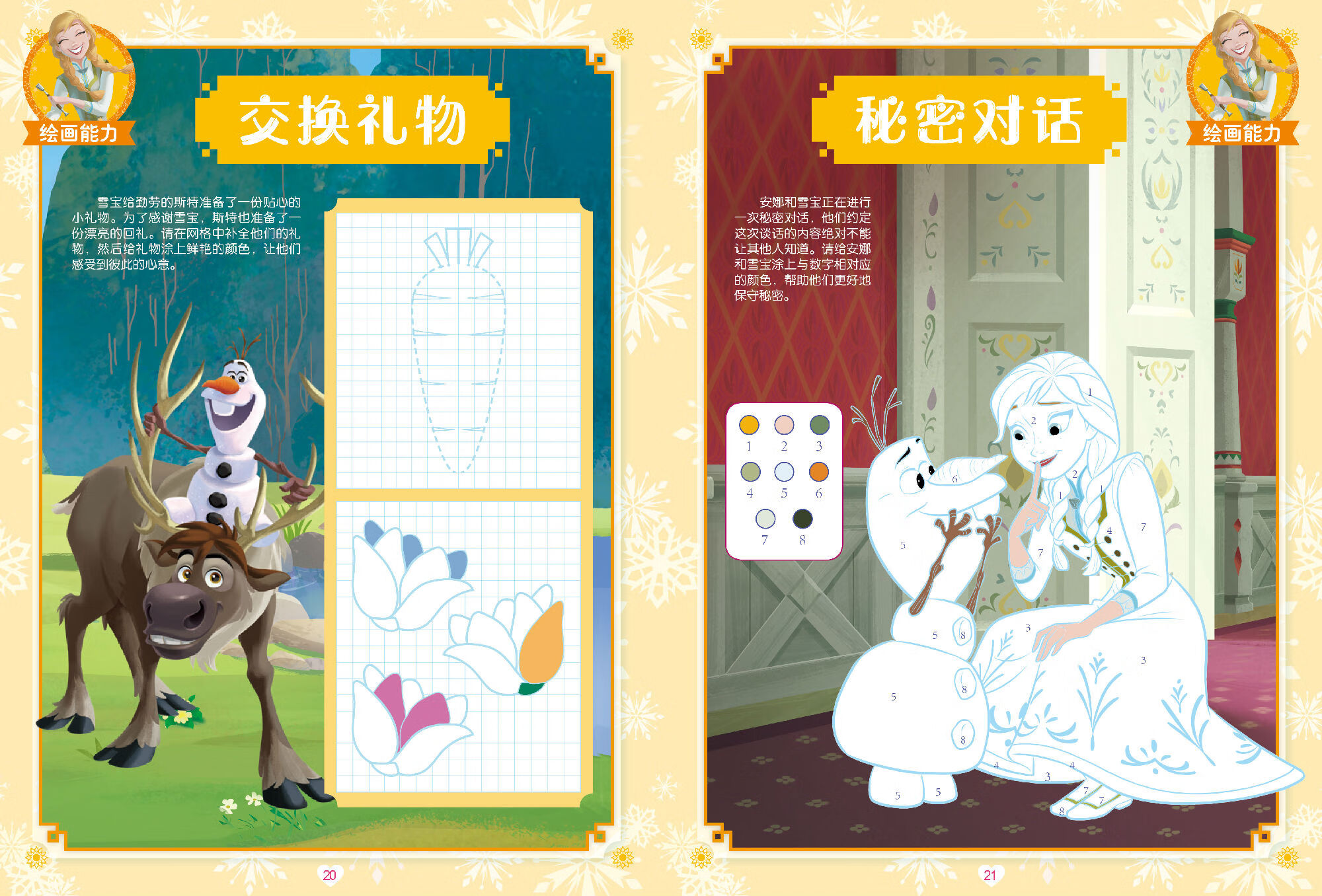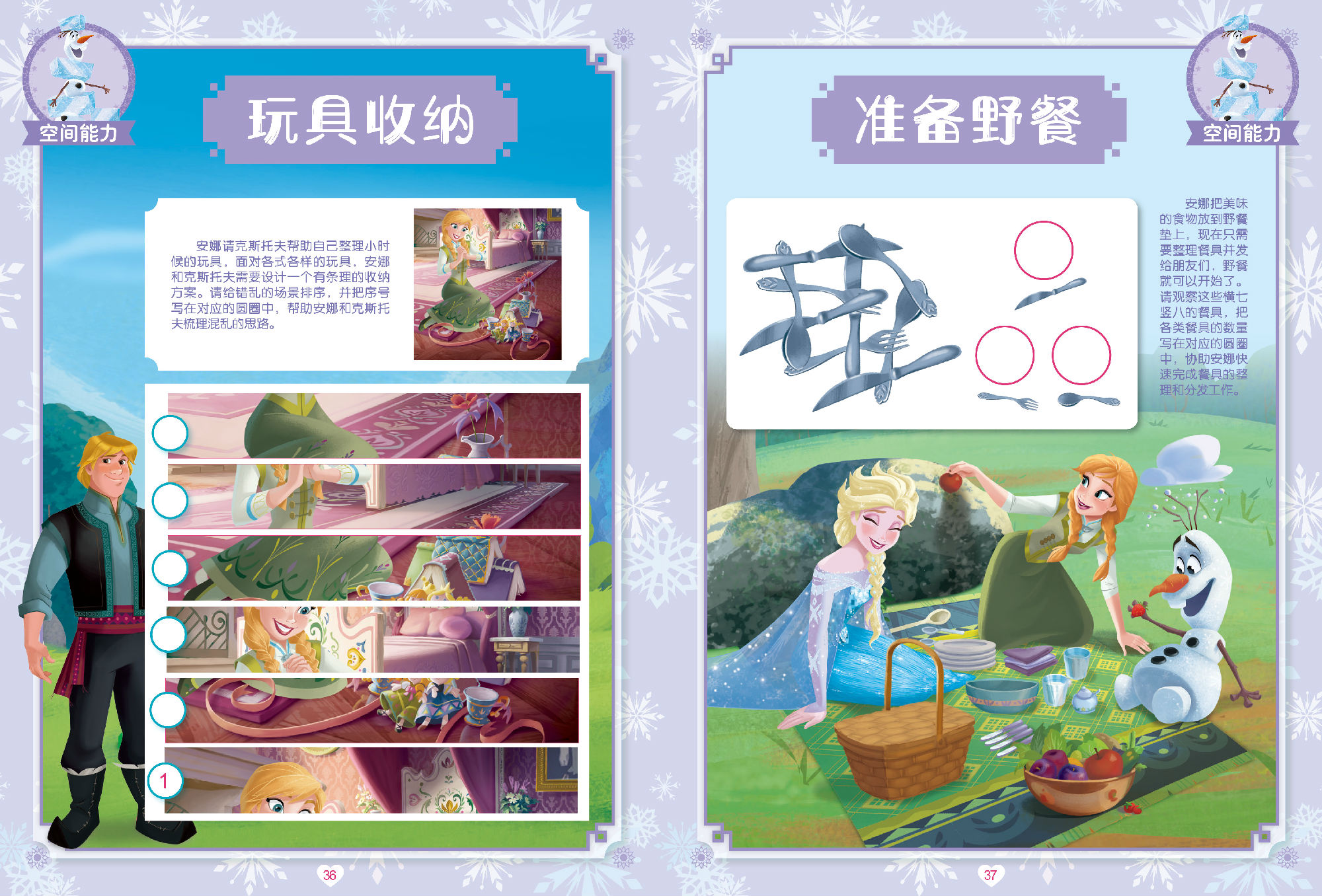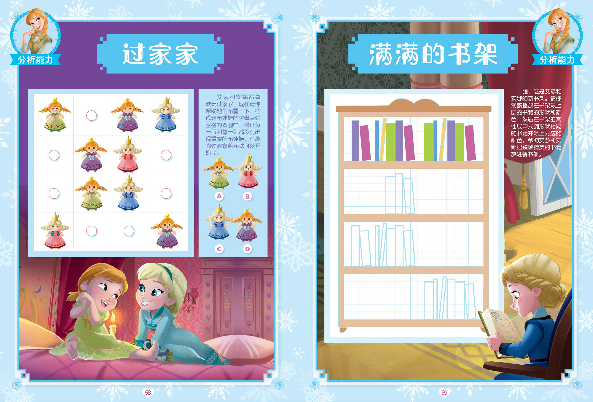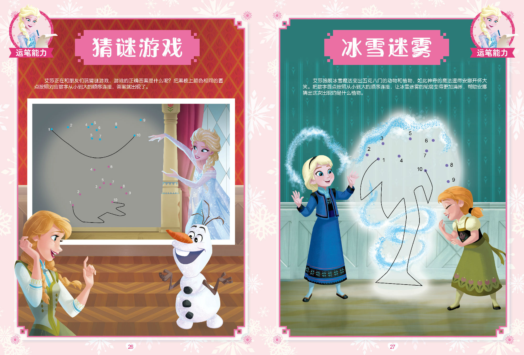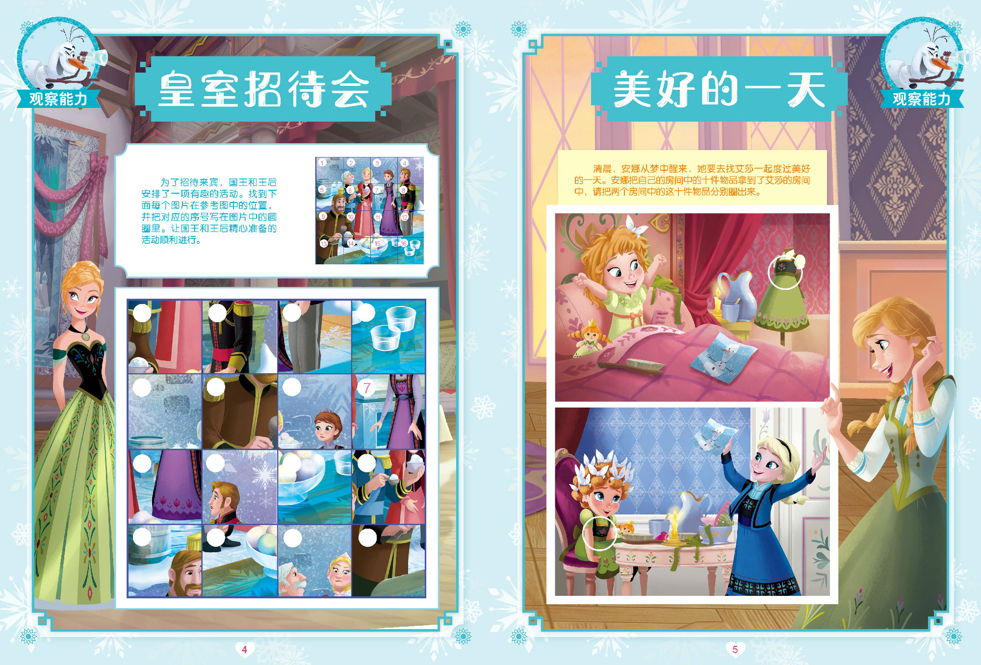 这是一本益智游戏书。把美丽的电影场景和受欢迎的人物与专注力游戏的形式结合起来,通过游戏提升孩子的观察、分析、绘画、运笔、数学能力,以及提高专注力和创造力,通过手工提升孩子的动手能力、思维能力。随书附赠冰雪奇缘风格的钻石贴纸,好看好贴,激发创造力。