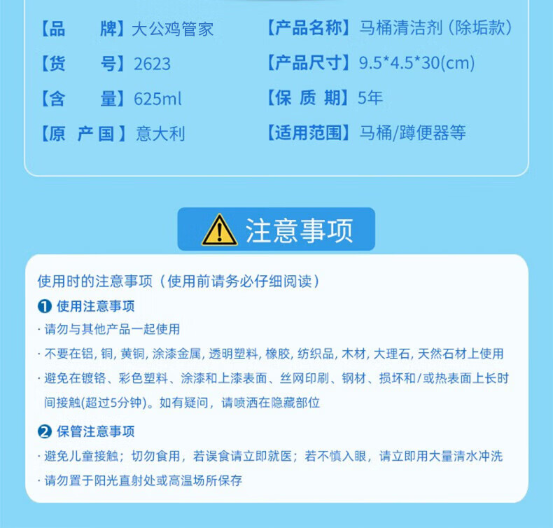 CHANTECLAIR大公鸡管家 马桶清洁剂(除垢) 洁厕液 洁厕灵去渍去异味 625ml