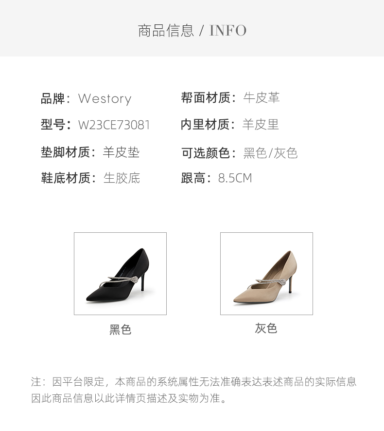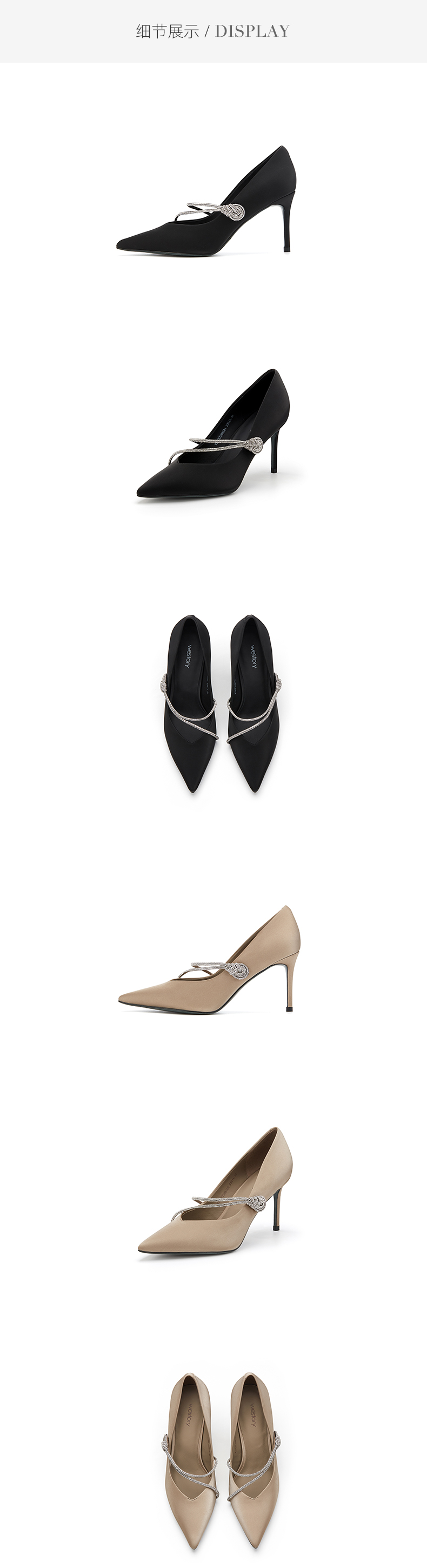 westory春秋尖头简约水钻一字带细跟时尚网红高跟鞋W23CE73081