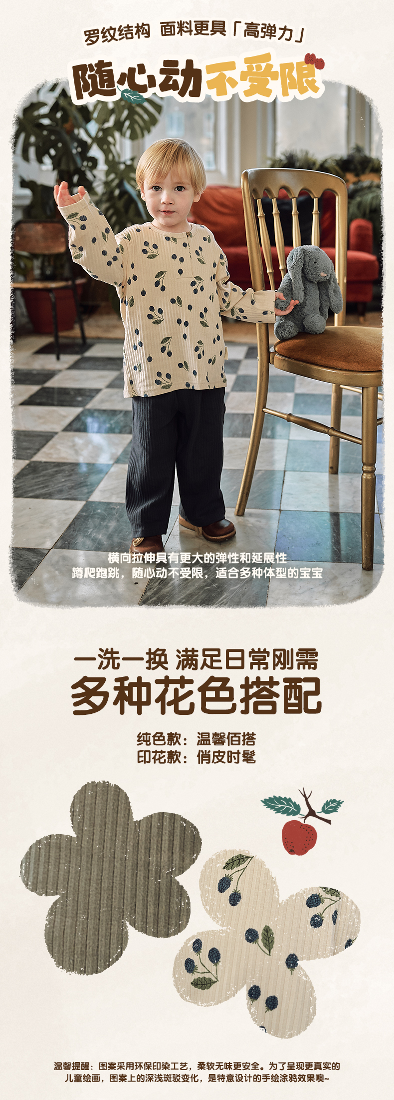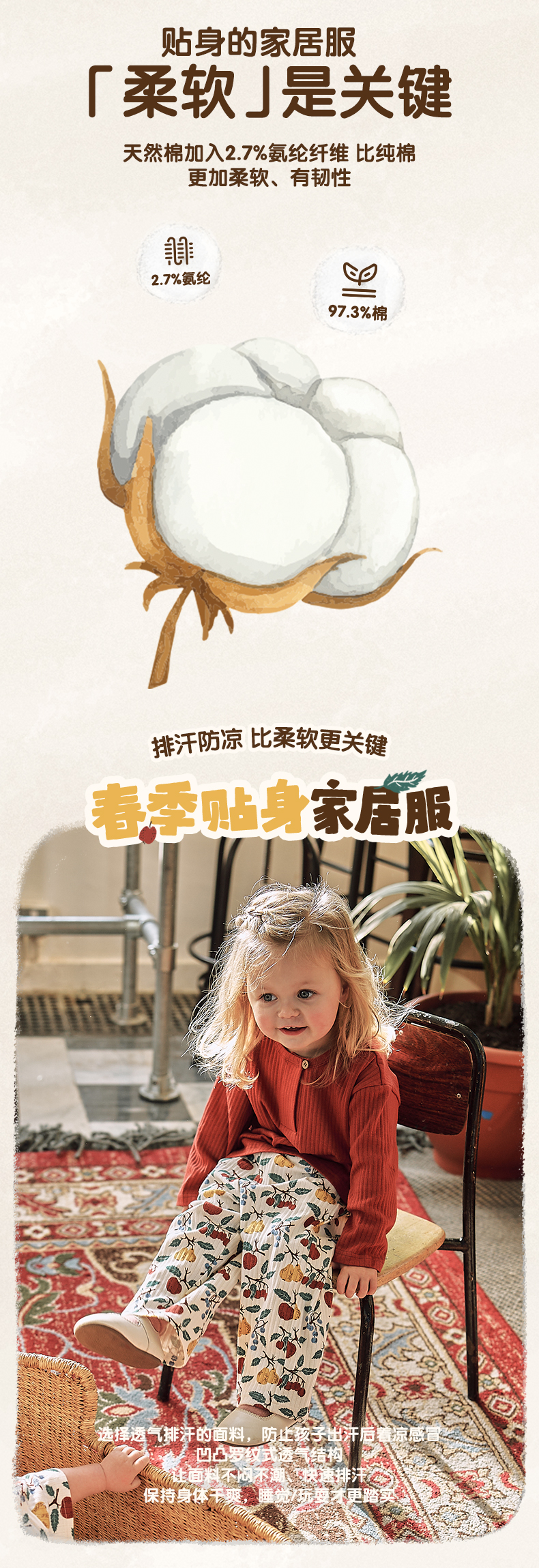 【云优选】lelejove北欧风儿童家居裤25春新宝宝舒适柔软家居服纯色肌理裤子