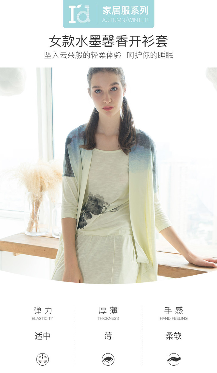 【超值套餐】爱帝女式棉麻三件套水墨家居服套装