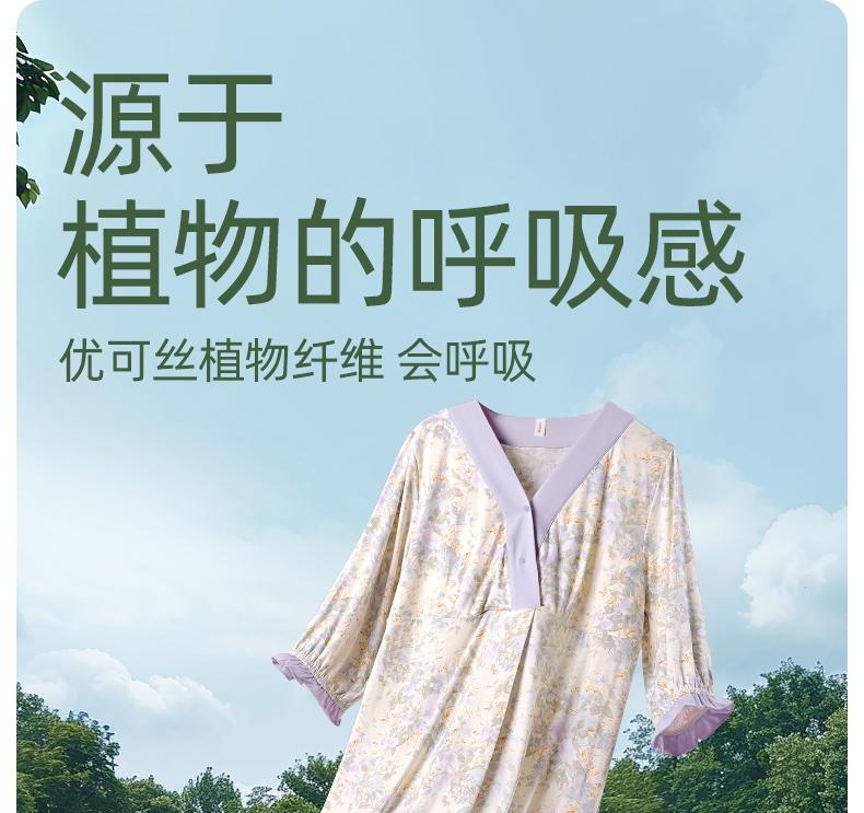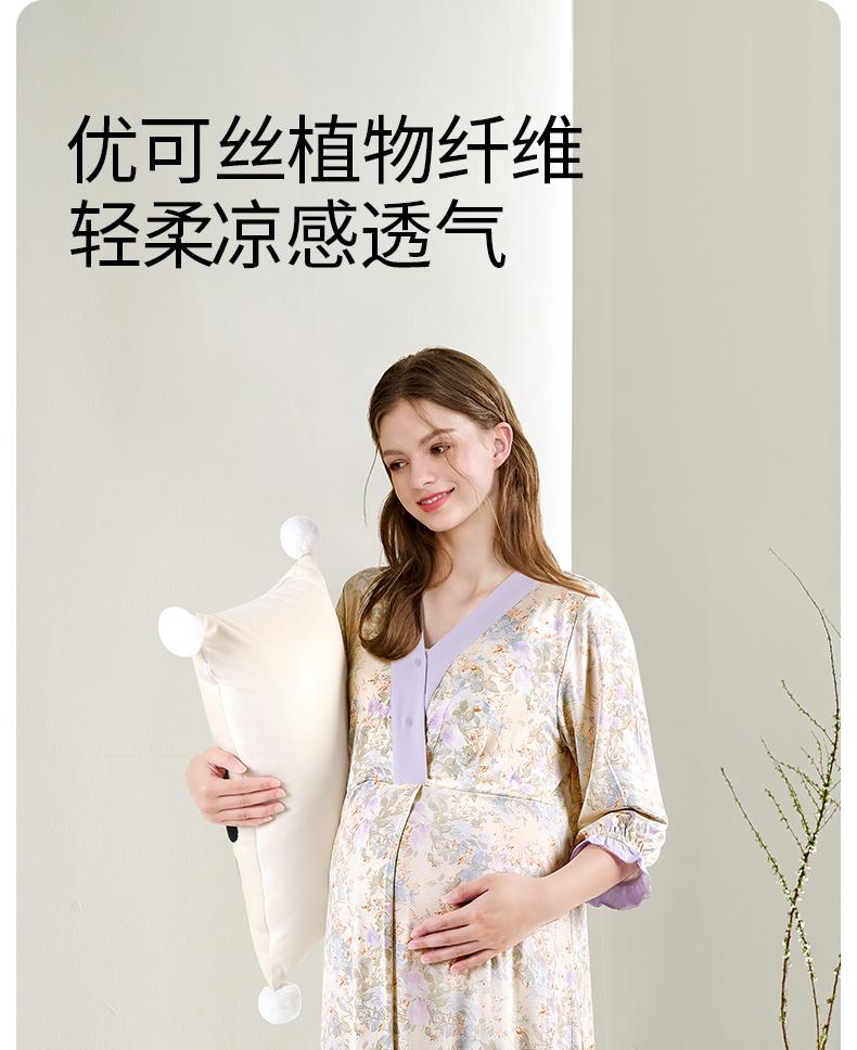 雅特茂(凉感·可拆胸垫)优可丝孕妇待产裙喂奶睡裙连衣裙夏季薄款