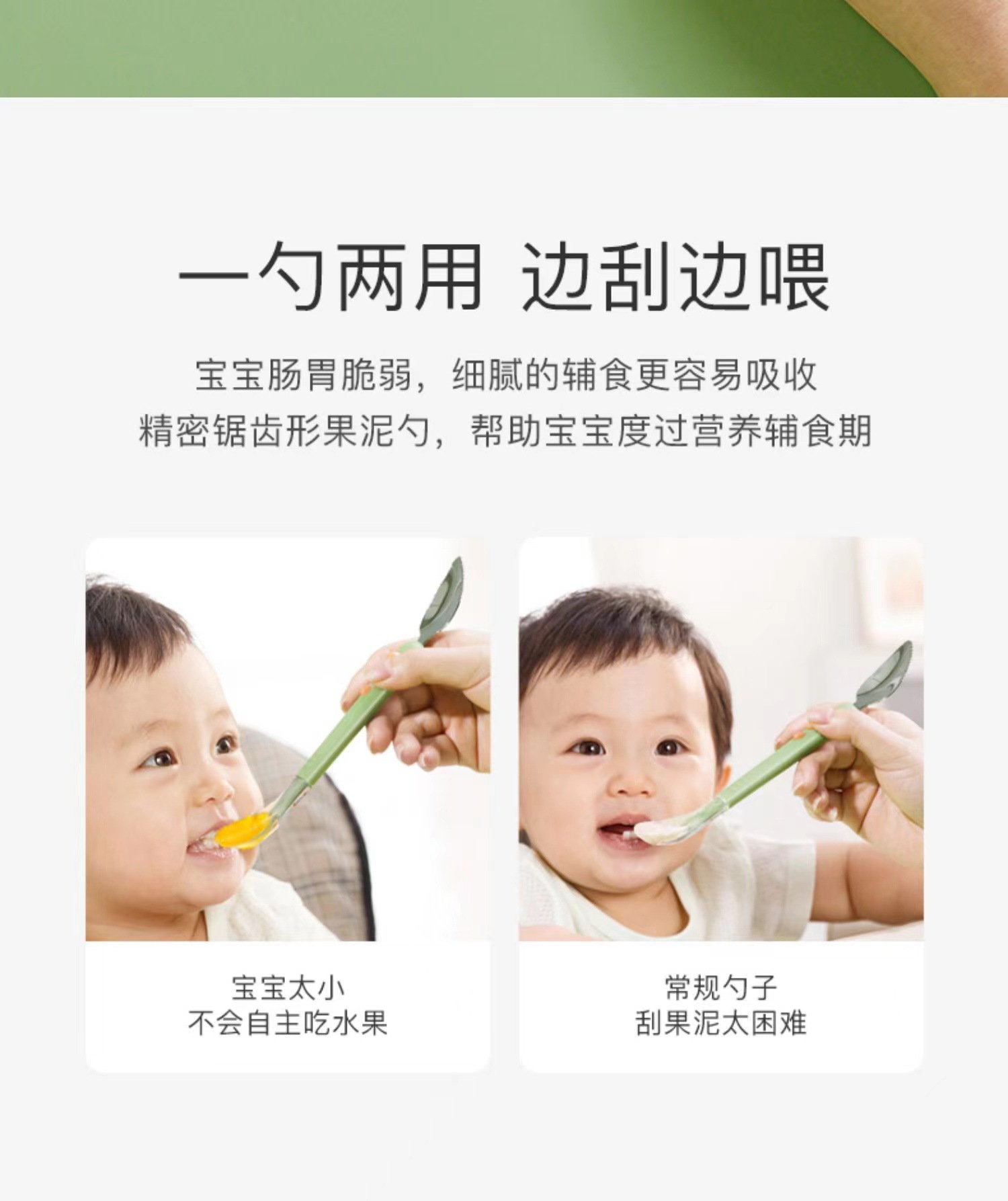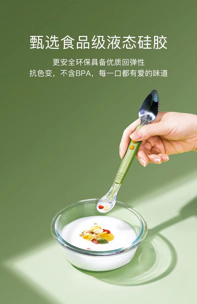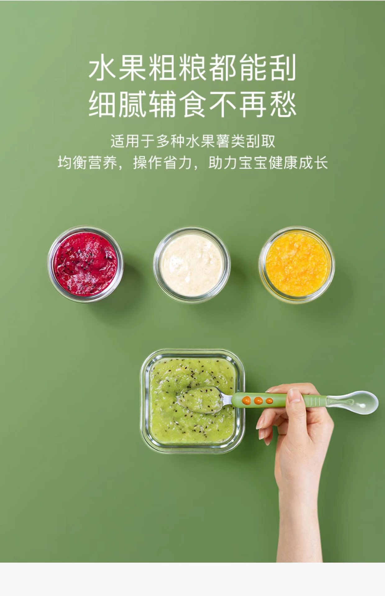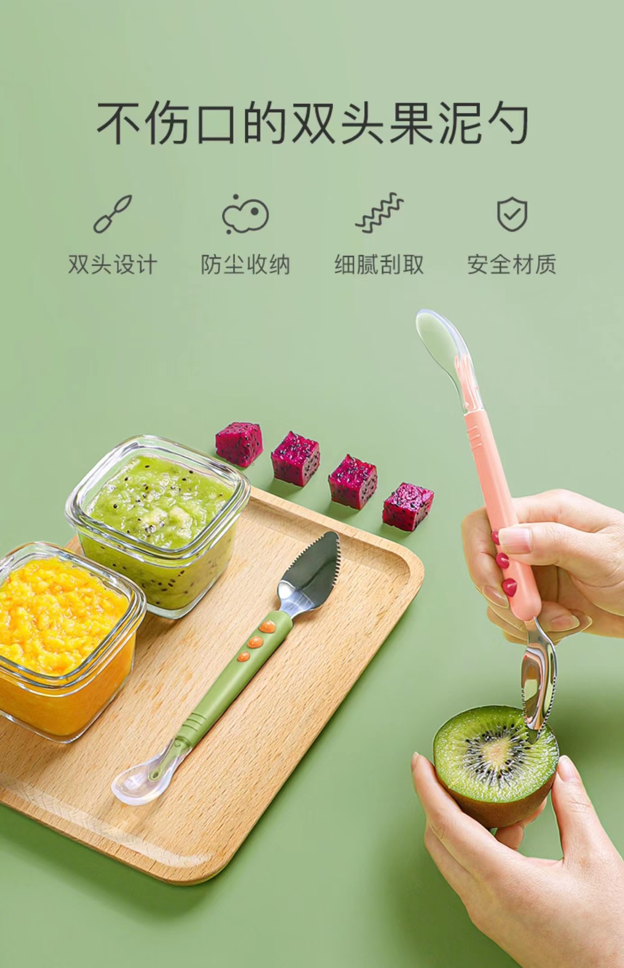宝宝婴幼儿刮苹果泥勺双头刮泥勺子辅食勺刮水果泥神器硅胶不锈钢