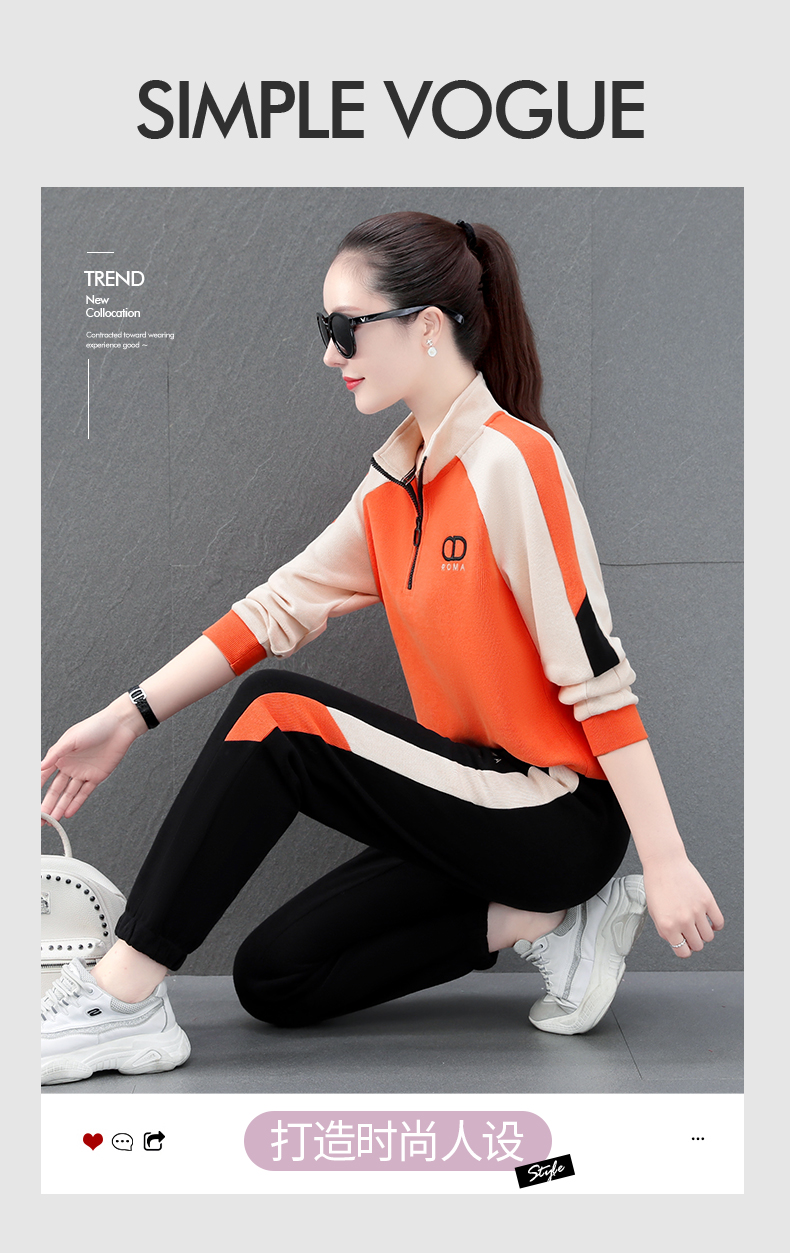 运动套装女春秋2022新款卫衣宽松跑步休闲服两件套潮HL9811