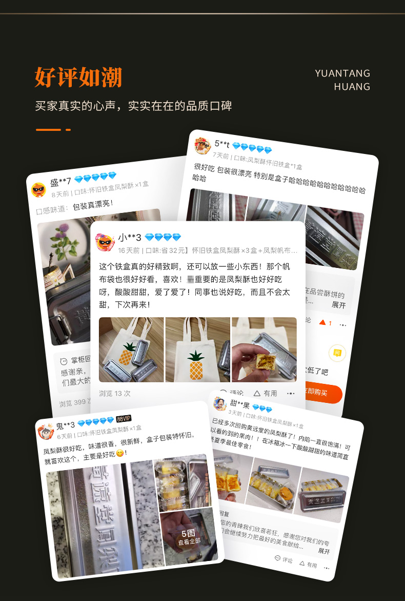 【老字号】黄远堂 铁盒原味凤梨酥/黑凤梨酥 70g/70g*3