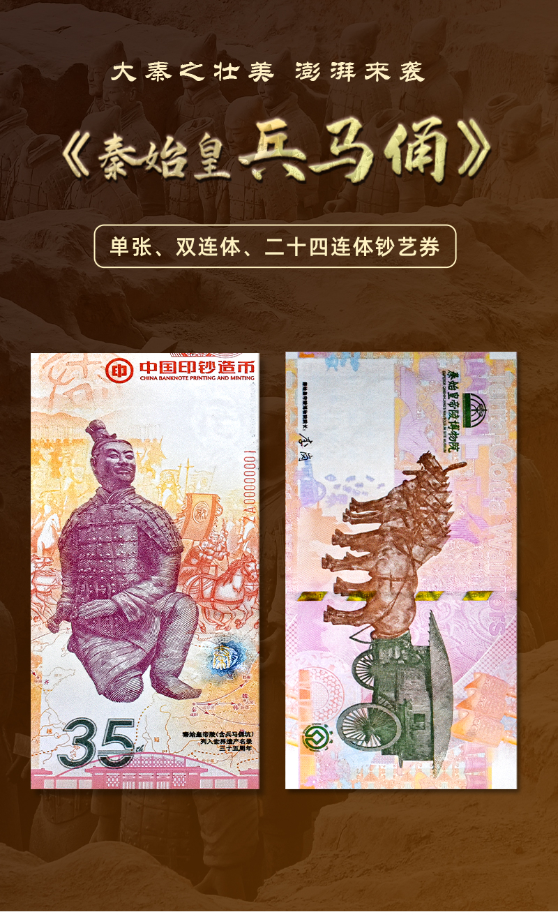 【中国印钞造币】世界文化遗产-兵马俑钞艺纪念券·跪射俑