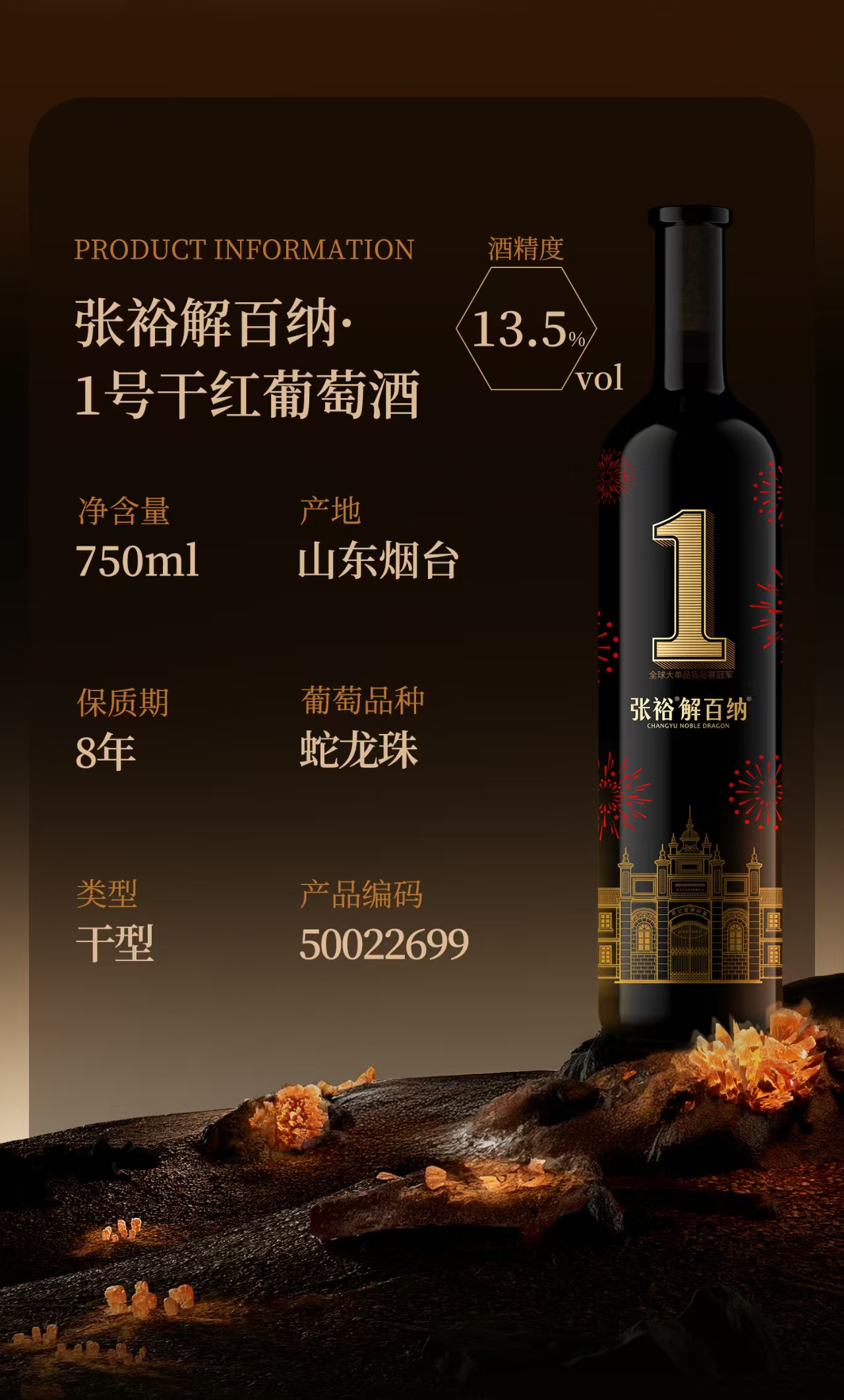 张裕解百纳·1号干红葡萄酒 酒精度:13.5°