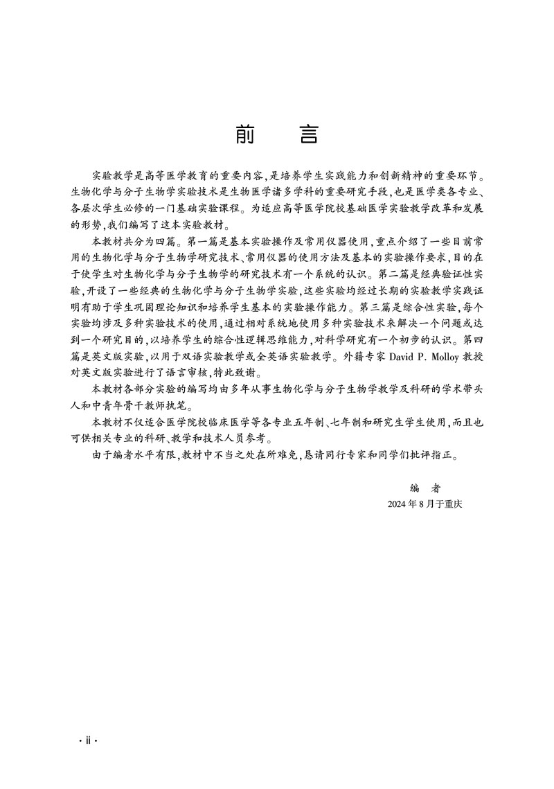 生物化学与分子生物学实验 第3三版 卜友泉主编 高等医药院校基础医学实验教学系列教材 供相关专业的科研 教学和技术人员参考
