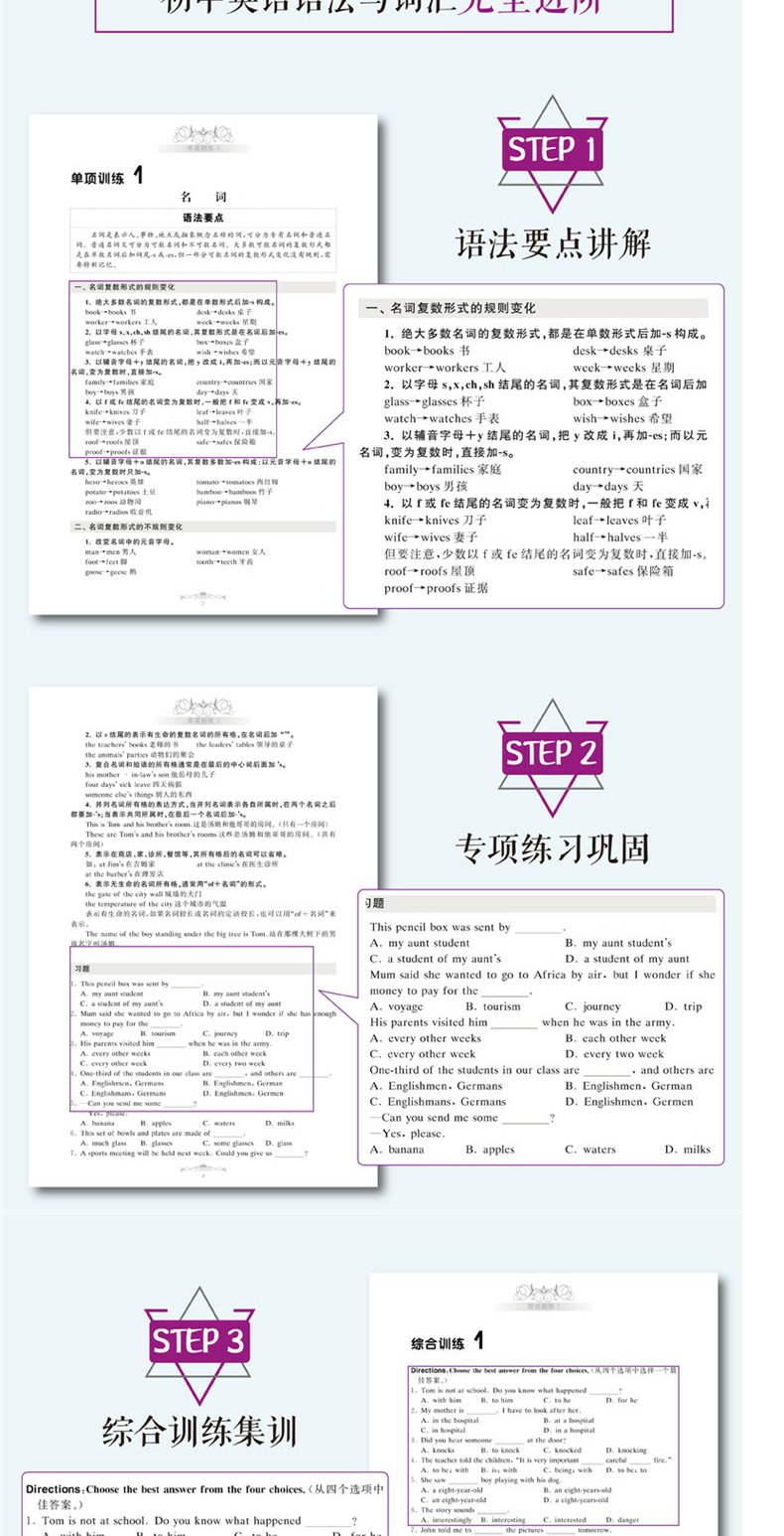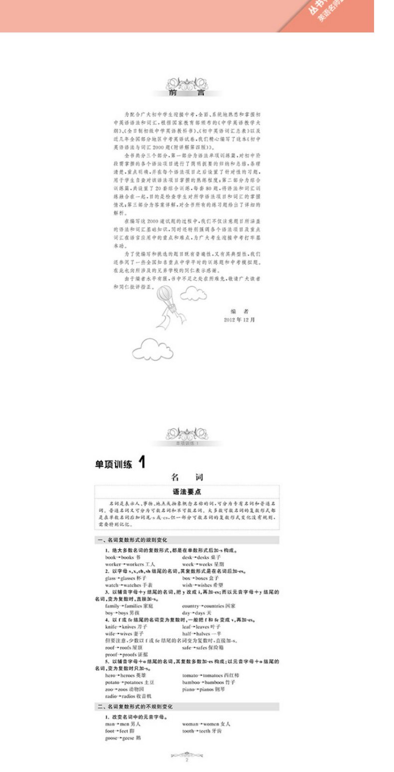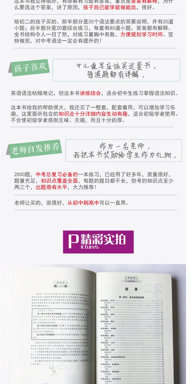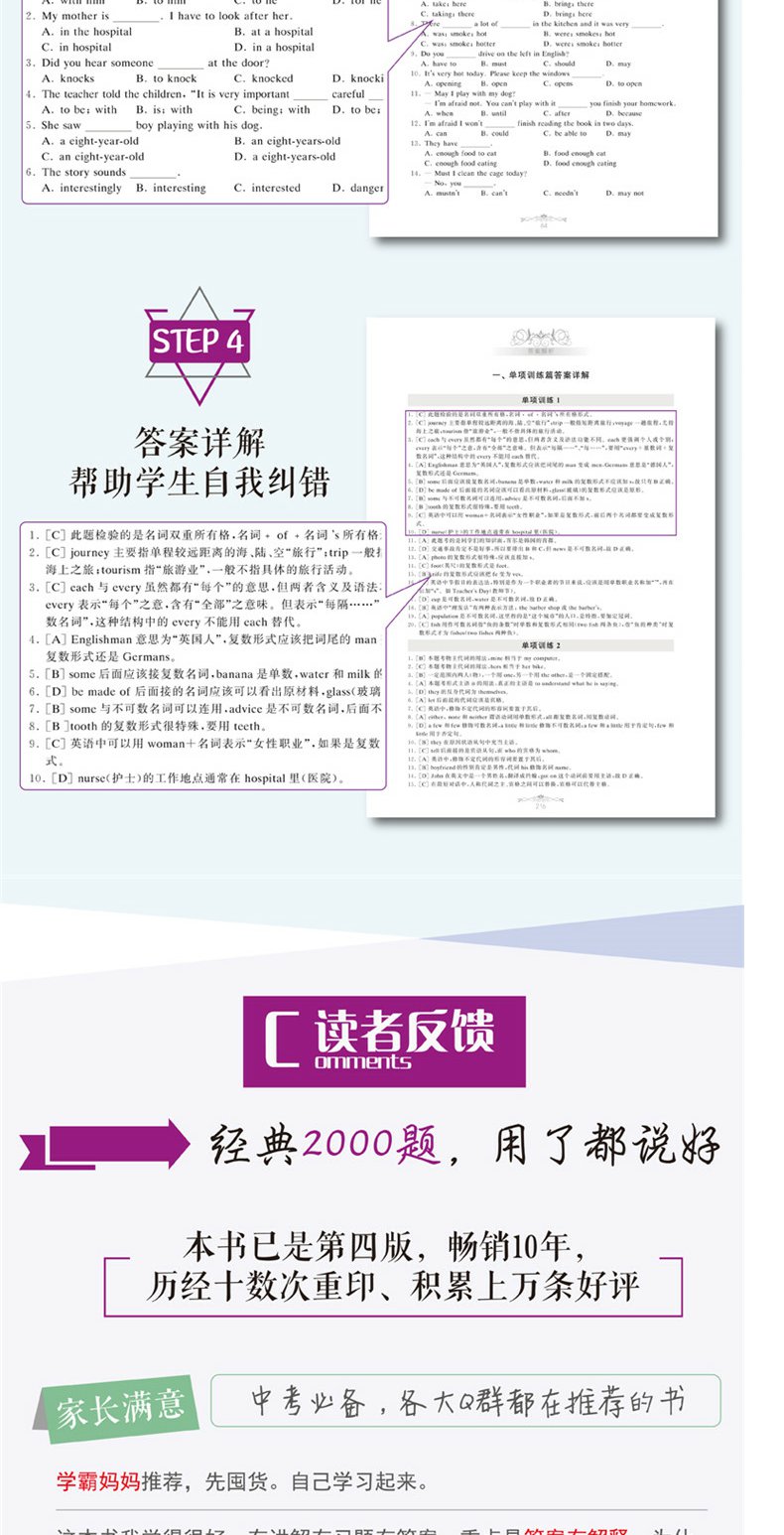 金英语初中英语语法与词汇2000题(附详解第4版)华东理工大学出版社 初中英语学习辅导专项训练英语词汇学习语法书练习册