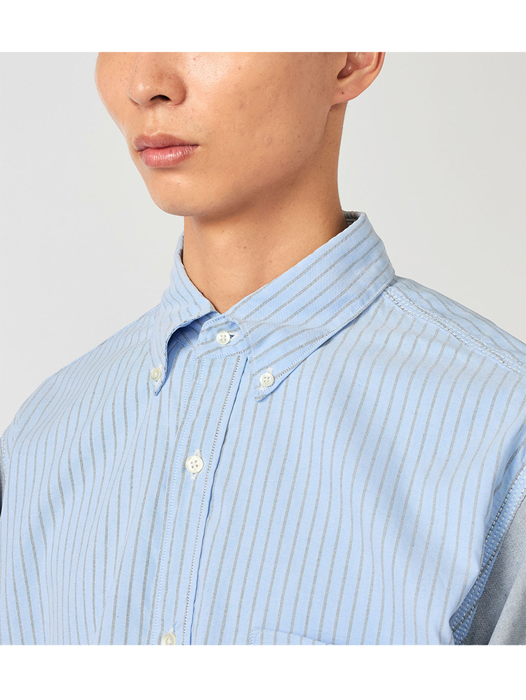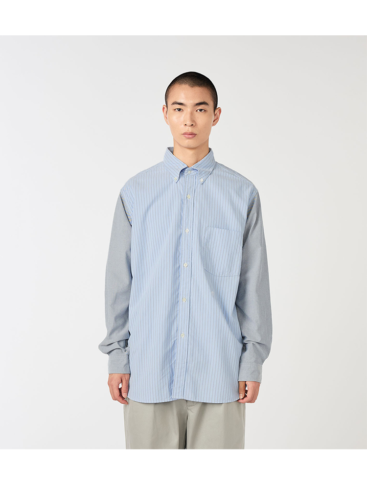 nanamica Button Down Stripe Storm 机能性面料复古拼色长袖衬衫