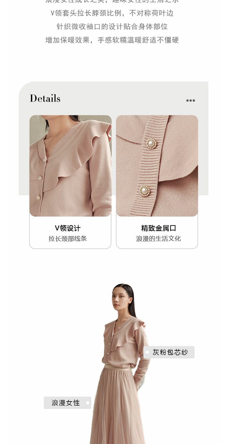 【Lucidy鲁思蒂】B4F丨长袖针织衫女2023新款春秋季气质V领设计感上衣外套(货号:ZZ08BE38628)