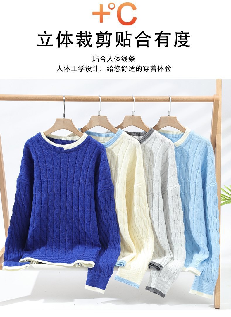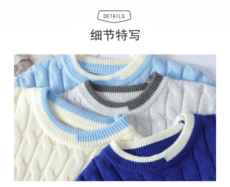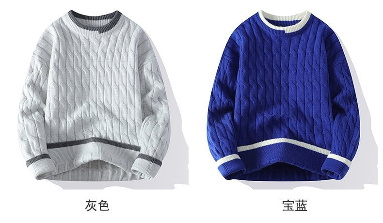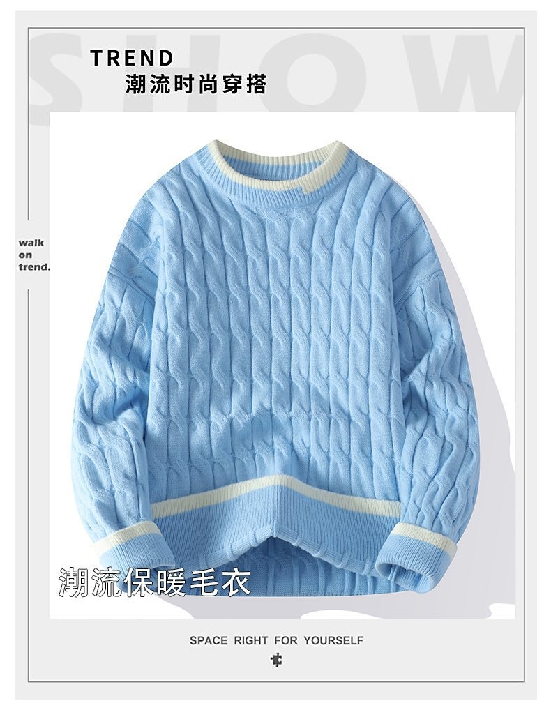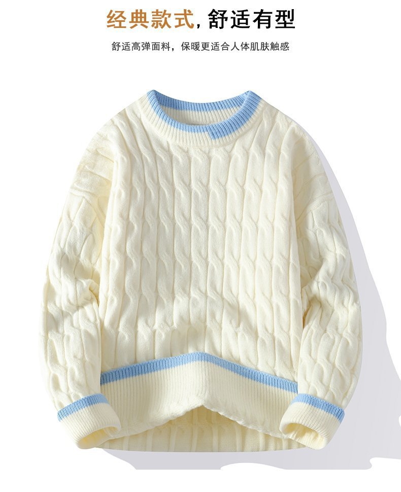 秋款上新!【经典款式,舒适有型!】男装秋冬新款 套头圆领镶色编织款长袖毛衣 男士保暖休闲针织衫-QB