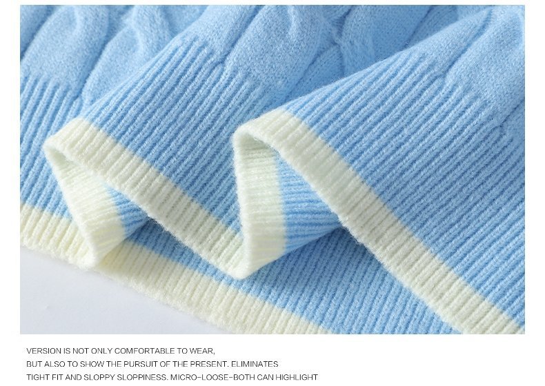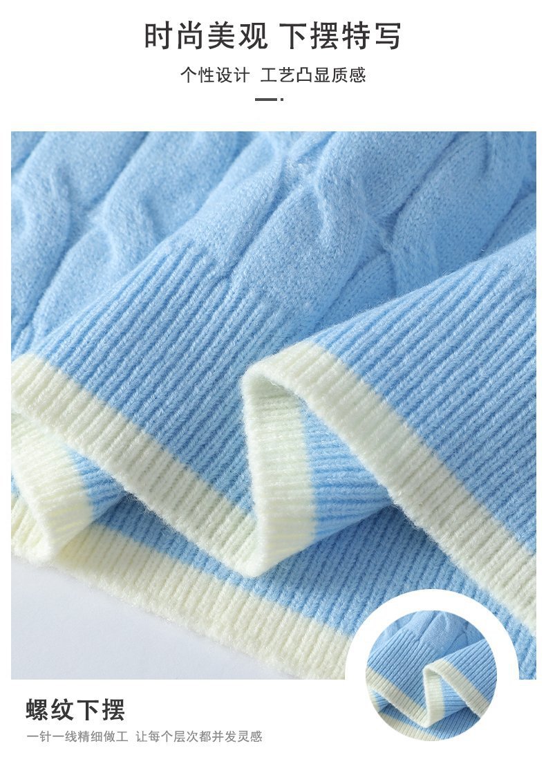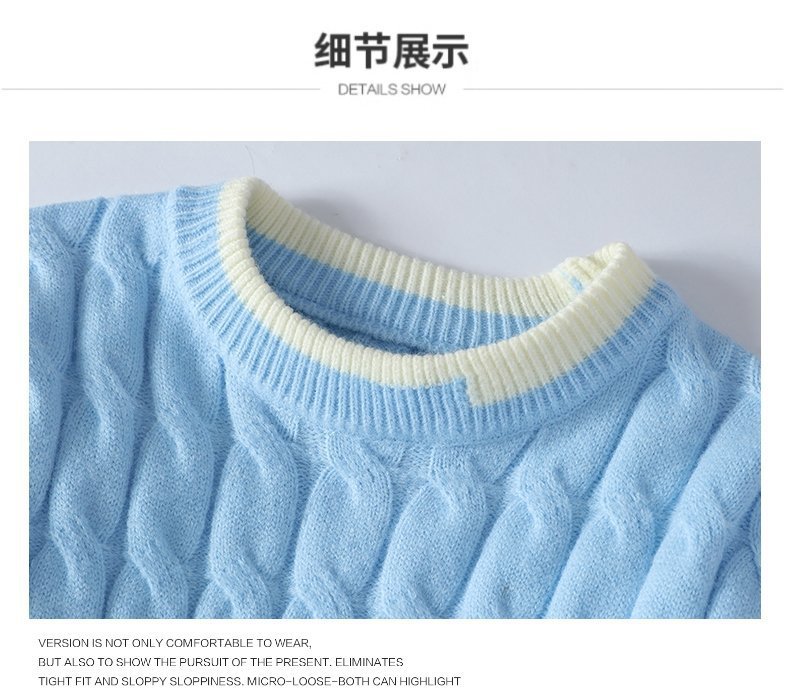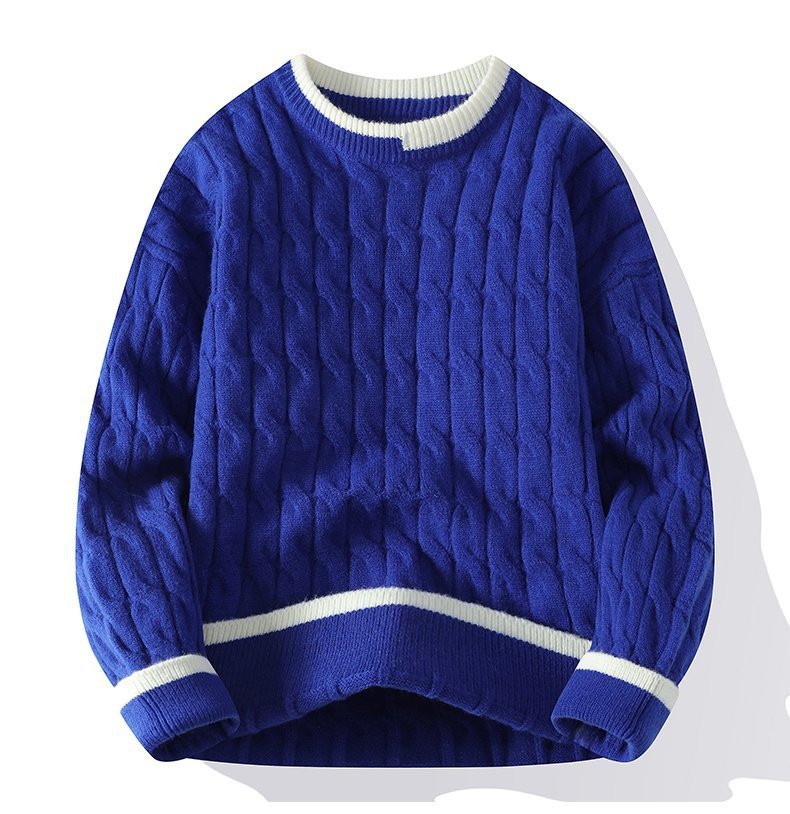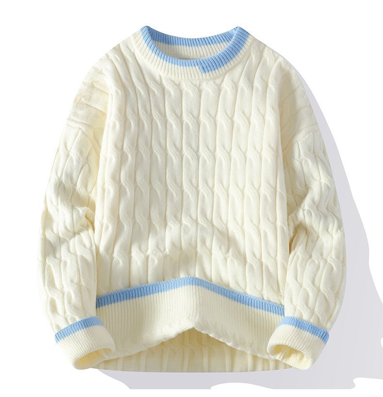 秋款上新!【经典款式,舒适有型!】男装秋冬新款 套头圆领镶色编织款长袖毛衣 男士保暖休闲针织衫-QB