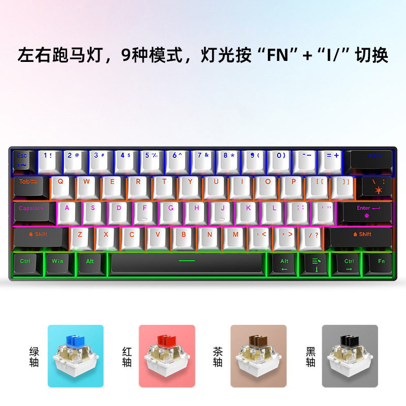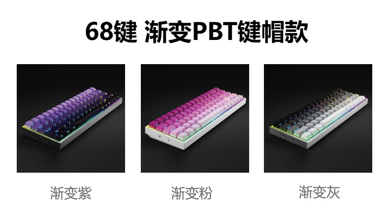 【68键渐变PBT键帽、青轴机械感强】有线机械键盘青轴68键热插拔侧刻渐变电竞游戏键盘.TA