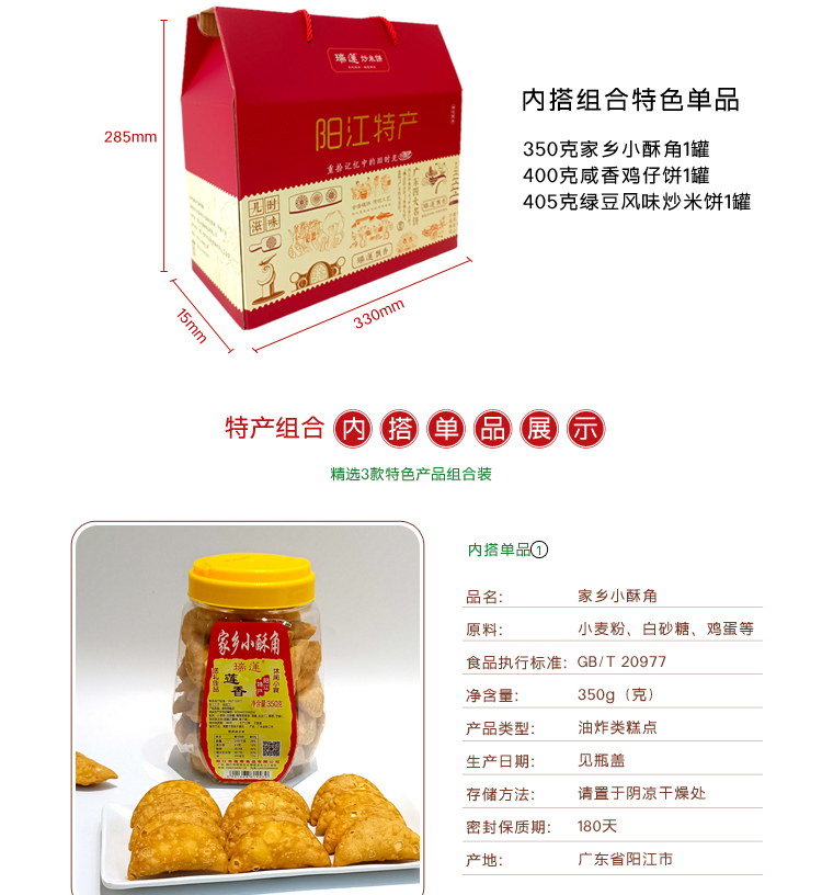 莲香 瑞莲·阳江特产组合礼盒·炒米饼、小酥角、鸡仔饼